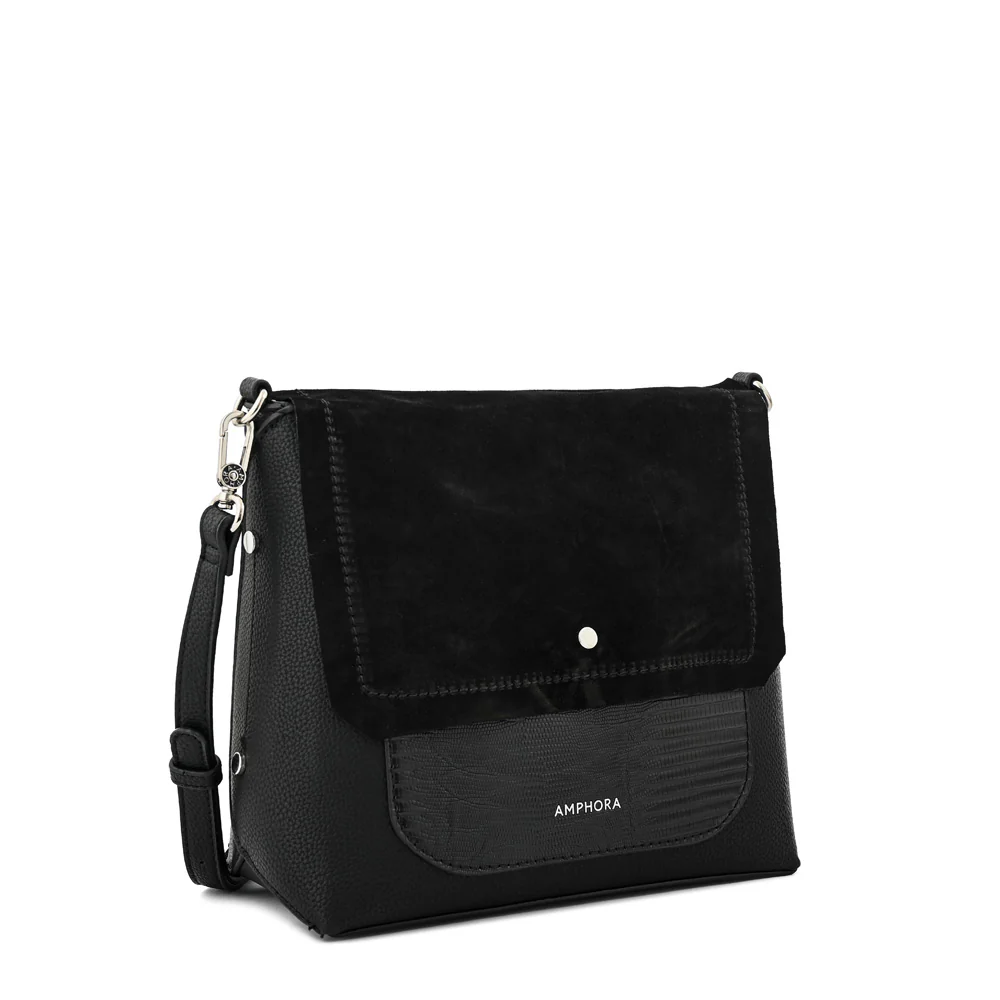Cartera bandolera con tapa mediana alvar Negro especial