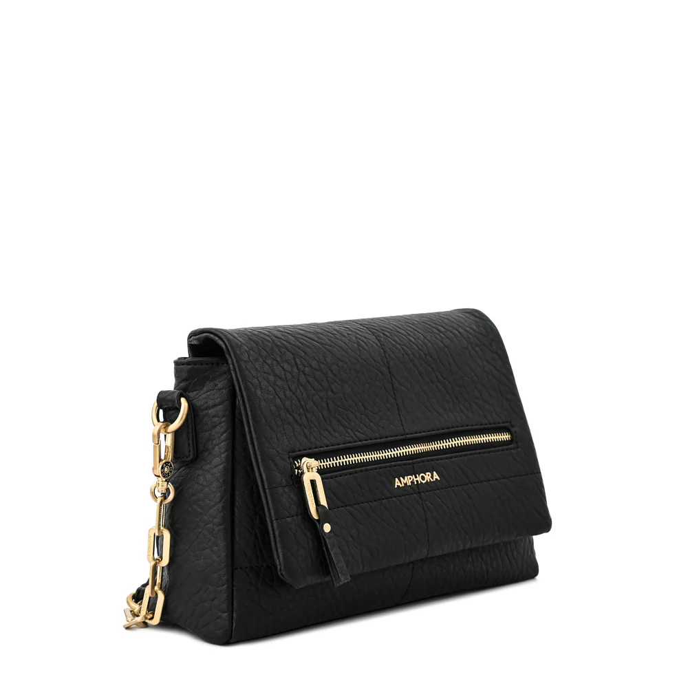 Cartera bandolera con tapa mediana elena Negro especial