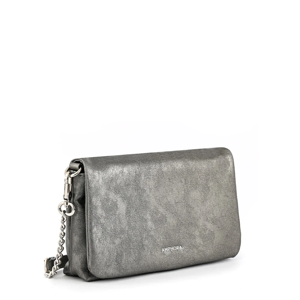 Cartera bandolera con tapa mediana muller plateado oscuro