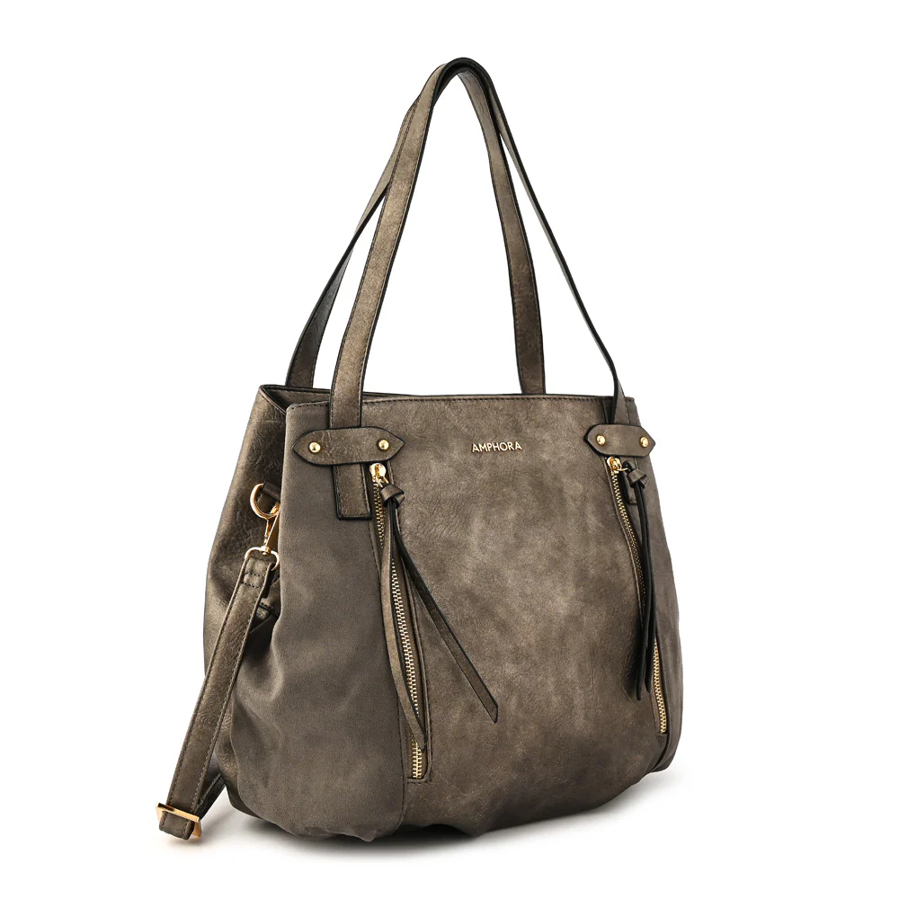 Cartera tote mediana guyana plateado oscuro