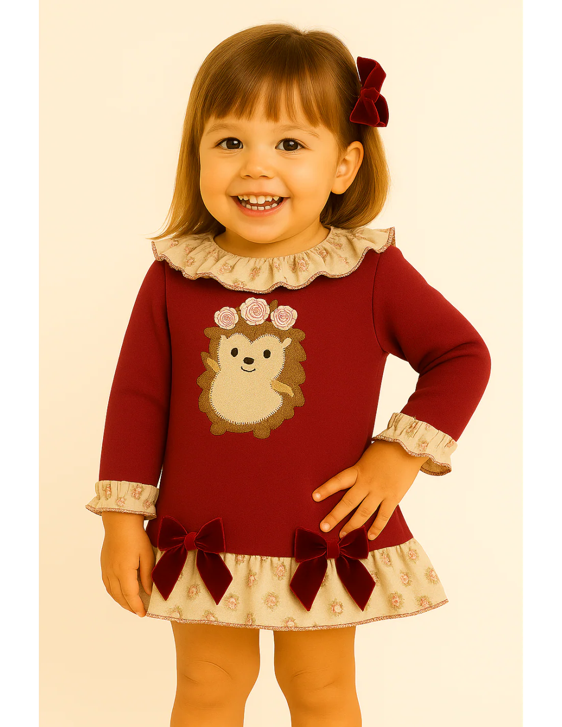 En conjunto, la prenda evoca una sensación de suavidad, comodidad y ternura, perfecta para los más pequeños. Es una opción versátil que podrÃa ser adecuada tanto para ocasiones especiales como para el uso diario en climas frescos.