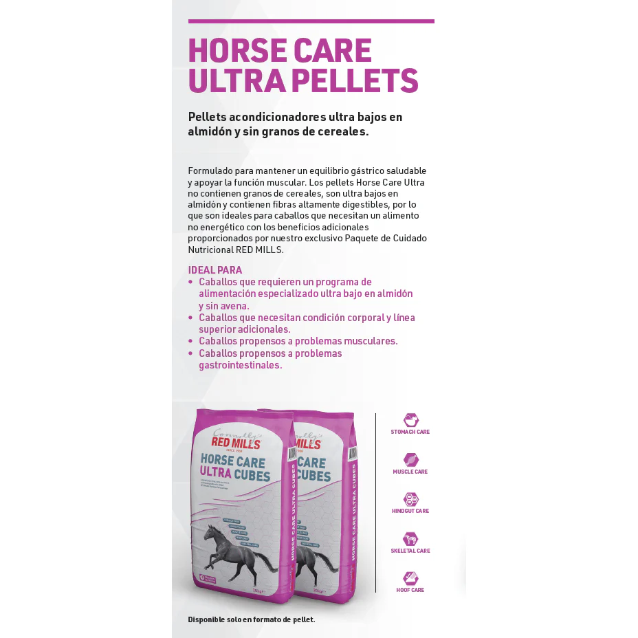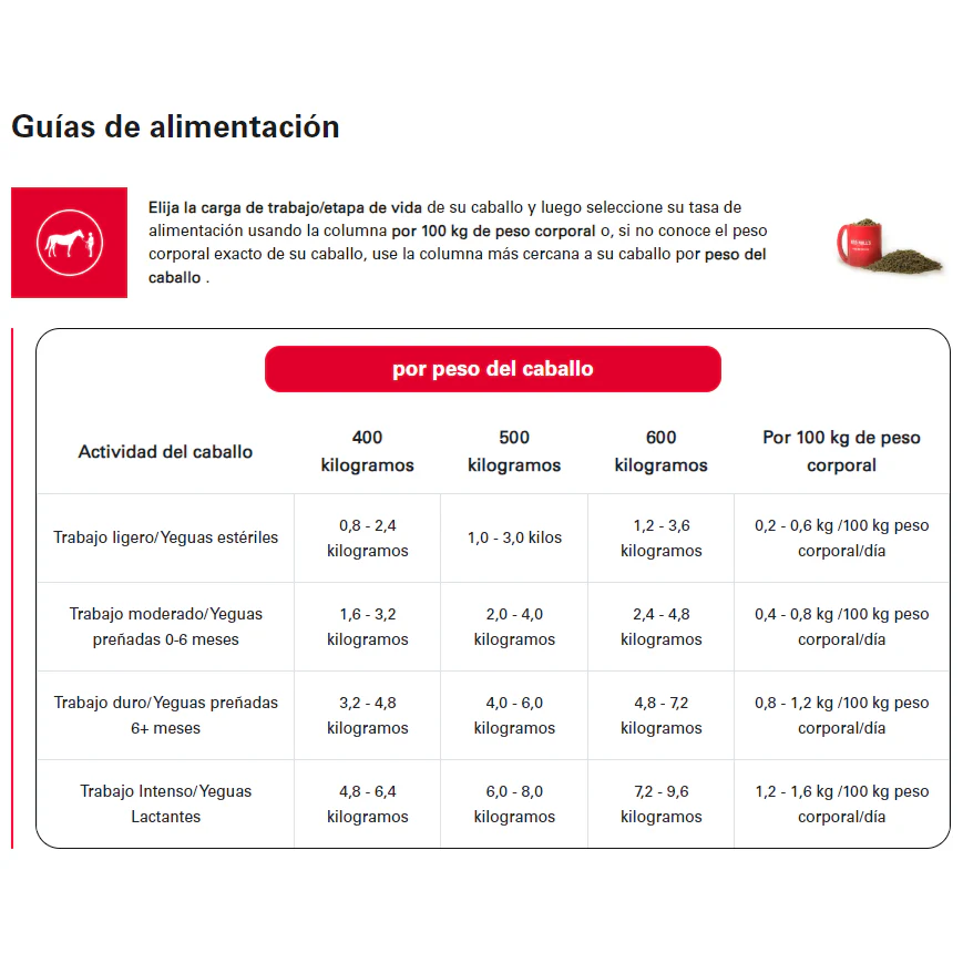 - Caballos que requieren un programa de alimentación especializado y ultra bajo en almidón.