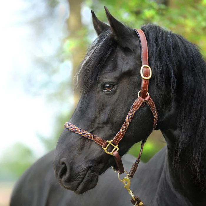 - Cabestro elaboradamente trenzado a mano con elementos de cuero.