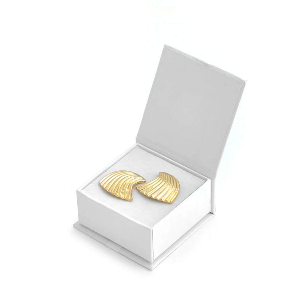 Girls just wanna have #Alaska. Con su diseño compacto y elegante, son el equilibrio entre minimalismo y lujo, aportando ese toque chic que eleva cualquier look. Fabricados en metal con baño de oro 18K son los aros indicados para brillar sin preocupaciones. Si lo tuyo es el estilo sofisticado con un toque moderno los aros #Alaska serán tu compañero ideal.