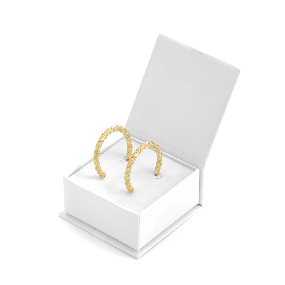 El poder del dorado en su máxima expresión con #Rany. Estos aros de argolla, fabricados en metal dorado claro con baño de oro 18K, son la declaración de estilo que estabas buscando. Con su tamaño perfecto y diseño elegante, #Rany aporta un toque sofisticado y moderno a tu look. El cierre de tuerca asegura comodidad y seguridad, manteniéndolos en su lugar todo el dÃa. #Rany es el accesorio que necesitas para elevar tu estilo sin esfuerzo.