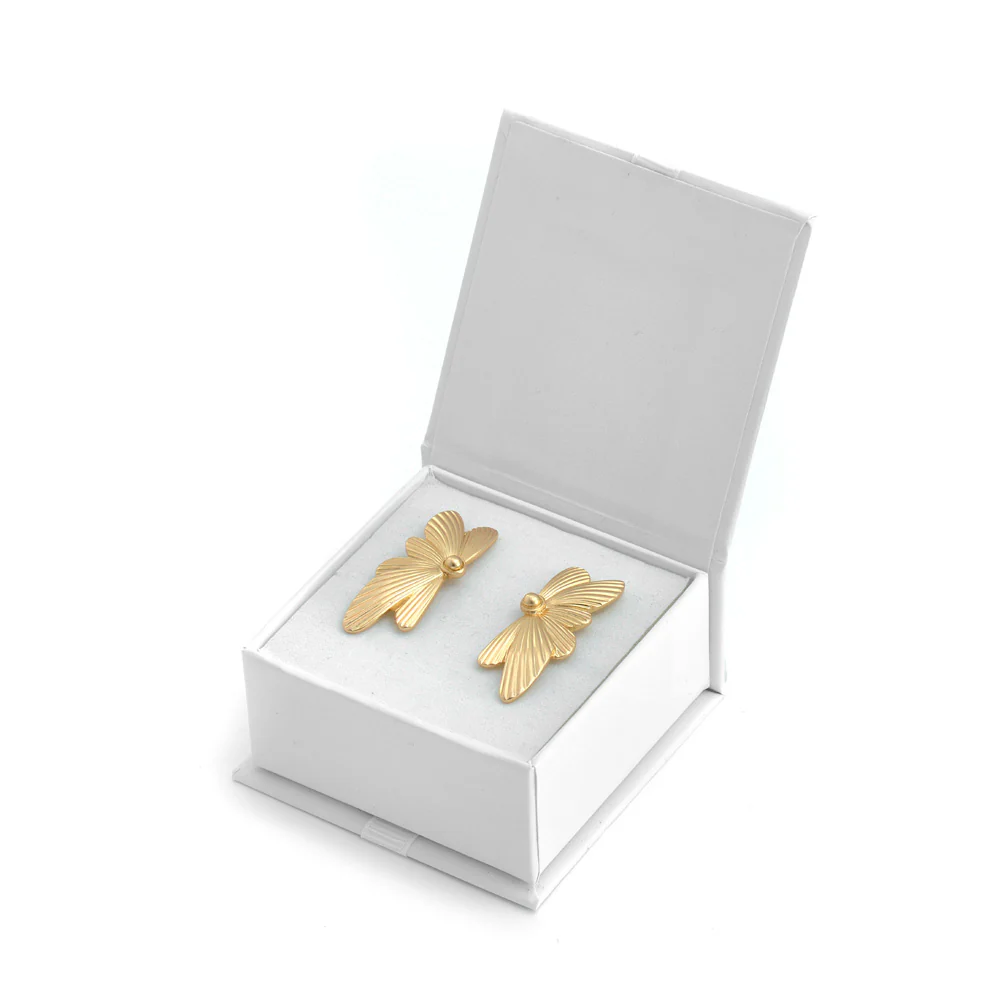 Fly high, shine brighter, asà son nuestros #Butterfly. Aros en aleación de metal con baño de oro 18K, delicados pero con toda la actitud. De tamaño mediano y con cierre de tuerca, entregan seguridad y comodidad en todo momento. Su diseño captura la esencia de la transformación y la libertad, aportando un glow especial, iluminando cualquier look con un aire dreamy & chic. Para quienes se atreven a cambiar y brillar sin miedo, #Butterfly es para ti.