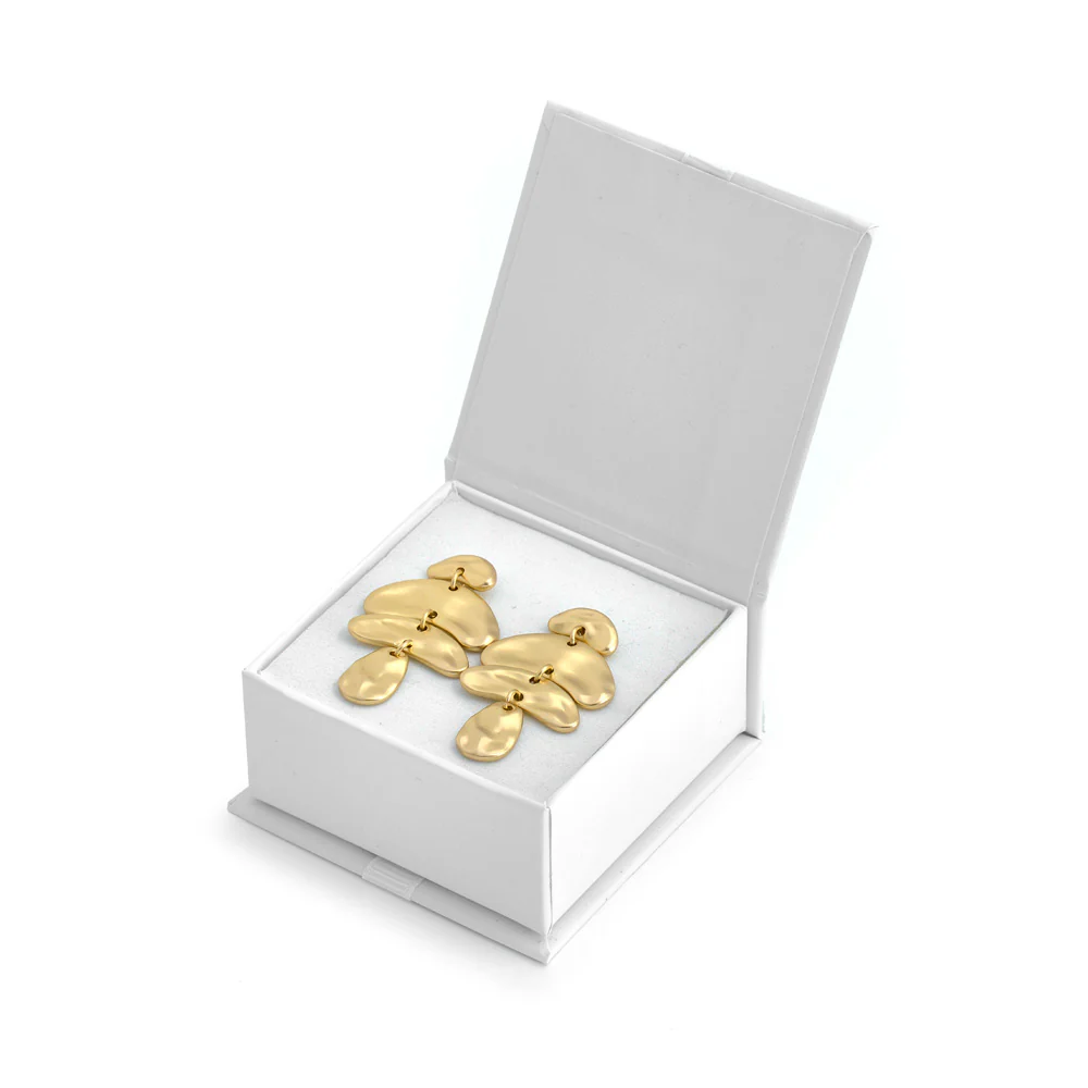 Obsessed with #Teresa. Aros colgantes de metal con baño de oro 18K , ese accesorio que dice todo sin decir nada. Estos aros colgantes dan un toque brillante a tu look sin exagerar, además su cierre de tuerca asegura que estén en su lugar mientras te mueves con libertad. Para esos días en los que eliges ser tú misma, auténtica y sin miedo a destacar #Teresa es tu mejor aliada.