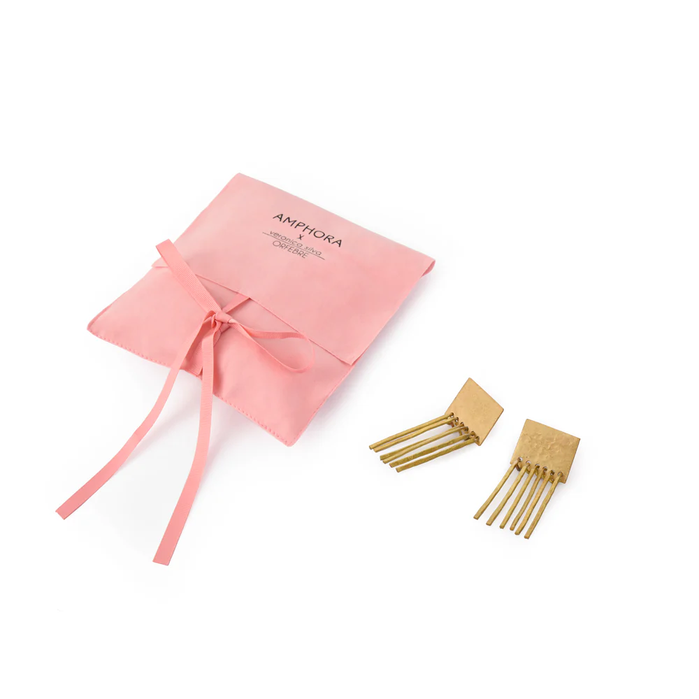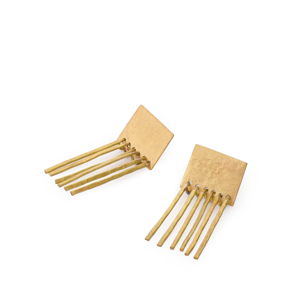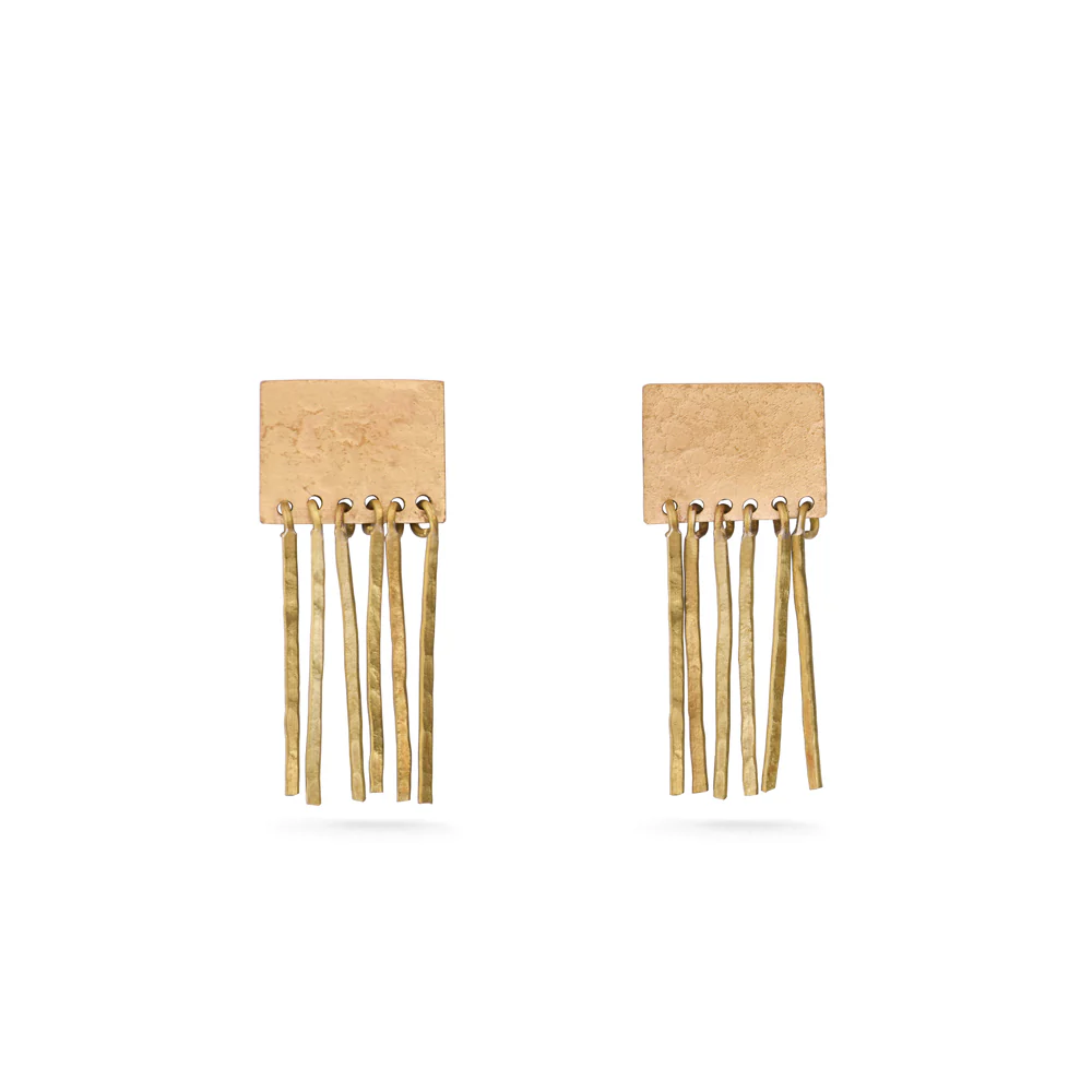 Para tomar nota y no olvidar: los aros con colgante Textura serán tus aliados por siempre. Inspirados en lo natural, la energÃa universal y la simpleza y elegancia de las lÃneas puras. Estos aros son de bronce hechos en Chile por la orfebre Verónica Silva. Una joya que confirma tu espÃritu libre y personalidad. Un accesorio indispensable para elevar cualquier look.