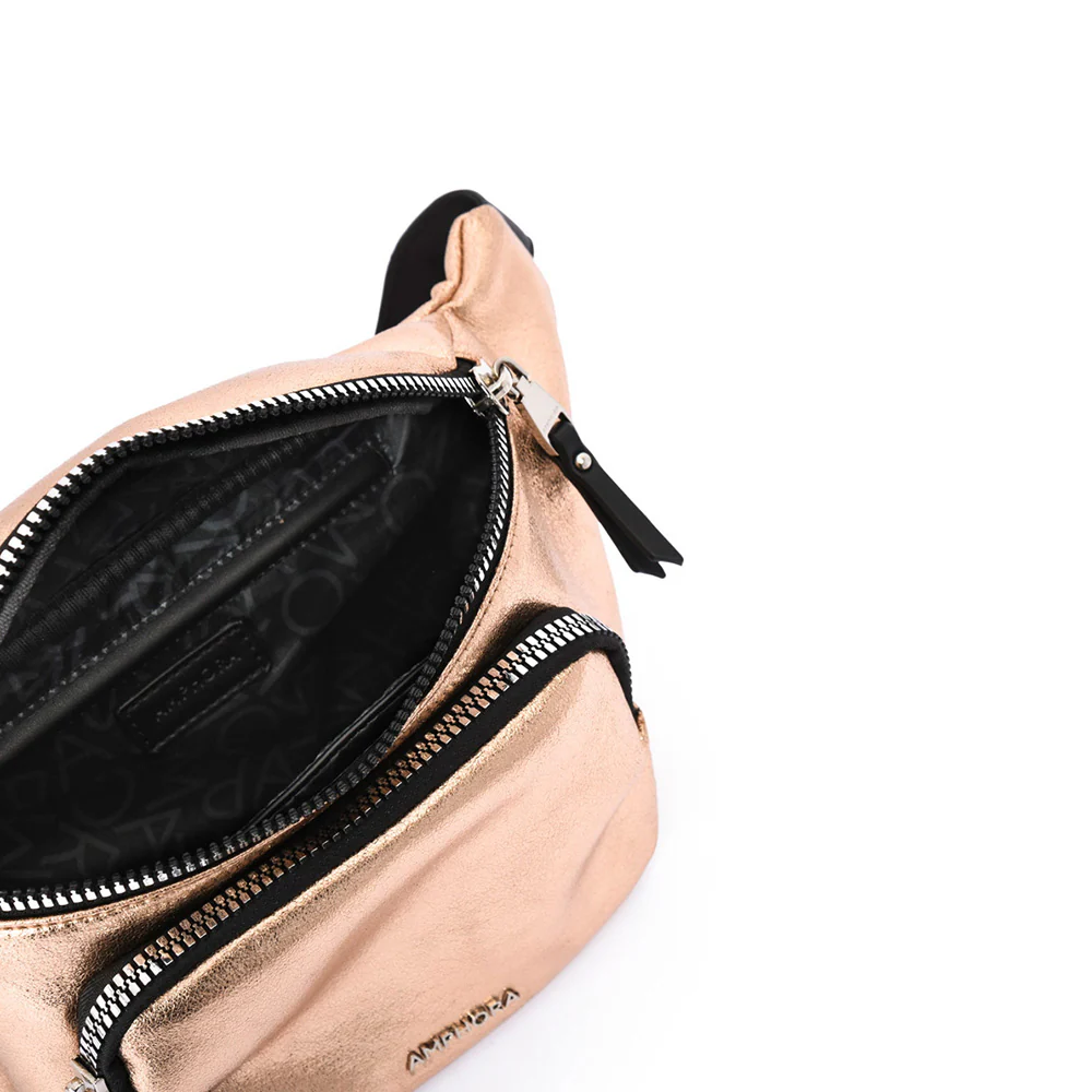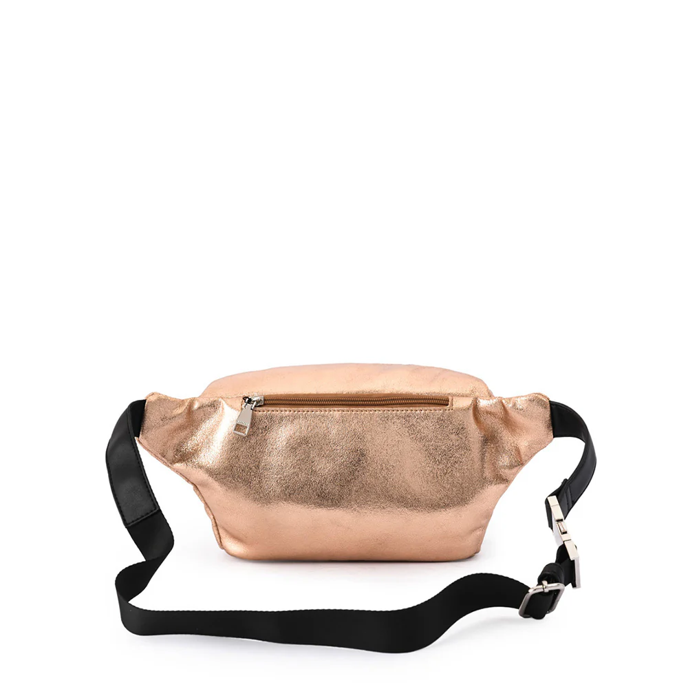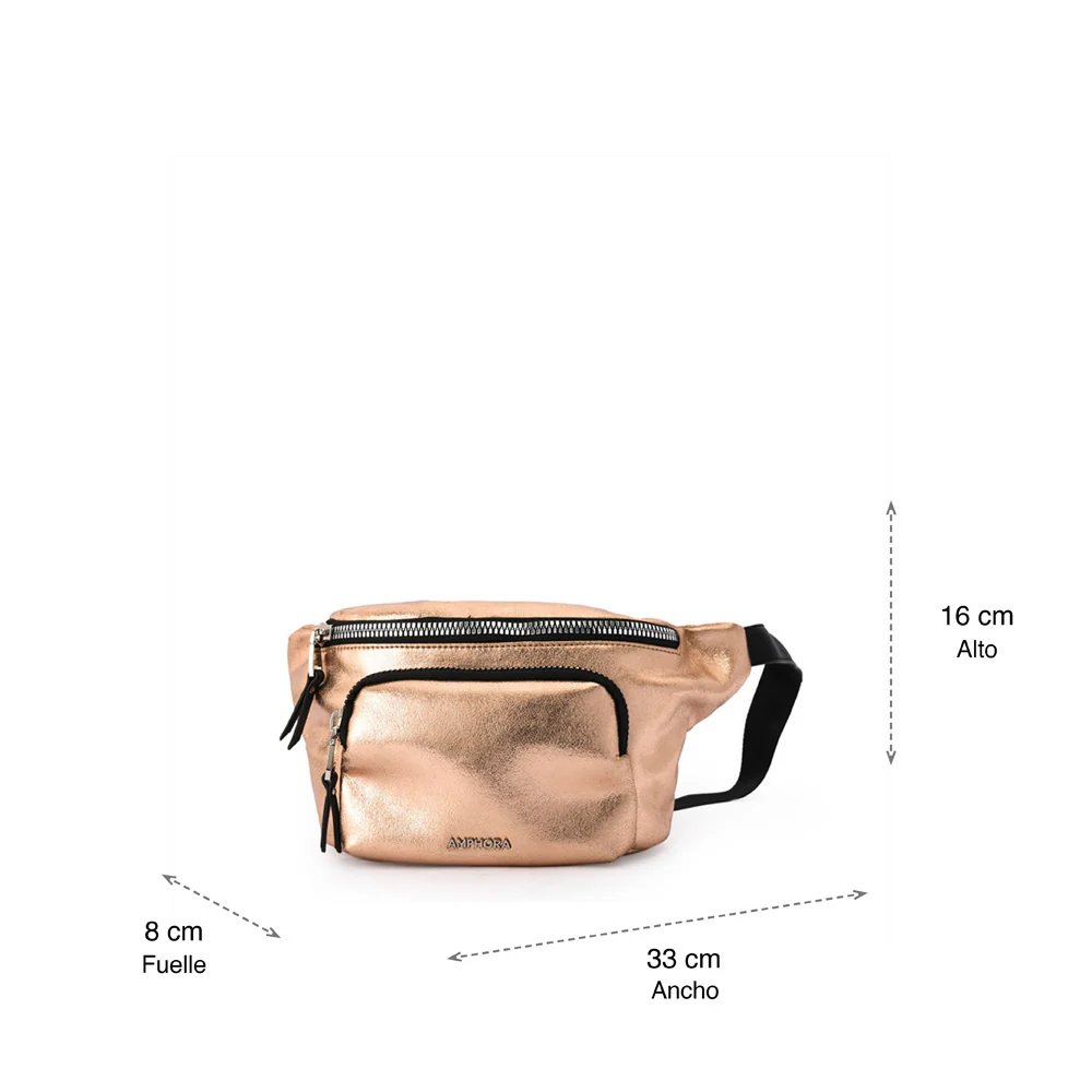 Nuestro banano Bugambilia puede ser tu best partner in fashion. Es de PU liso metalizado con mucha onda. Su cierre metalico, además de ser funcional le entrega un toque urbano preciso. Tiene tres bolsillos interiores y uno exterior para organizar tus carry on esenciales como el celular, billetera y audÃfonos. Esta mochila es tu compañera ideal para recorrer la ciudad.