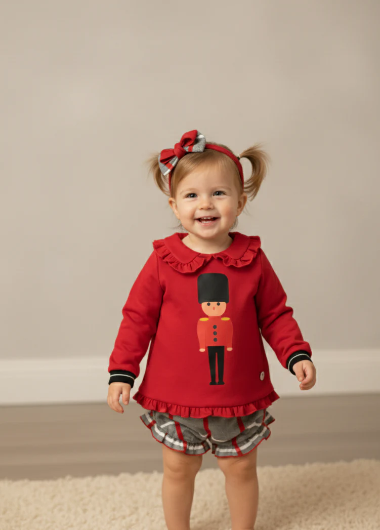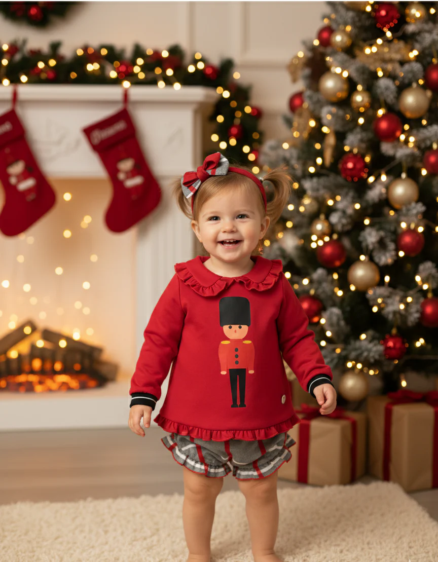 Jesusito de dos piezas. Sudadera roja con cascanueces y cuello Peter Pan.
