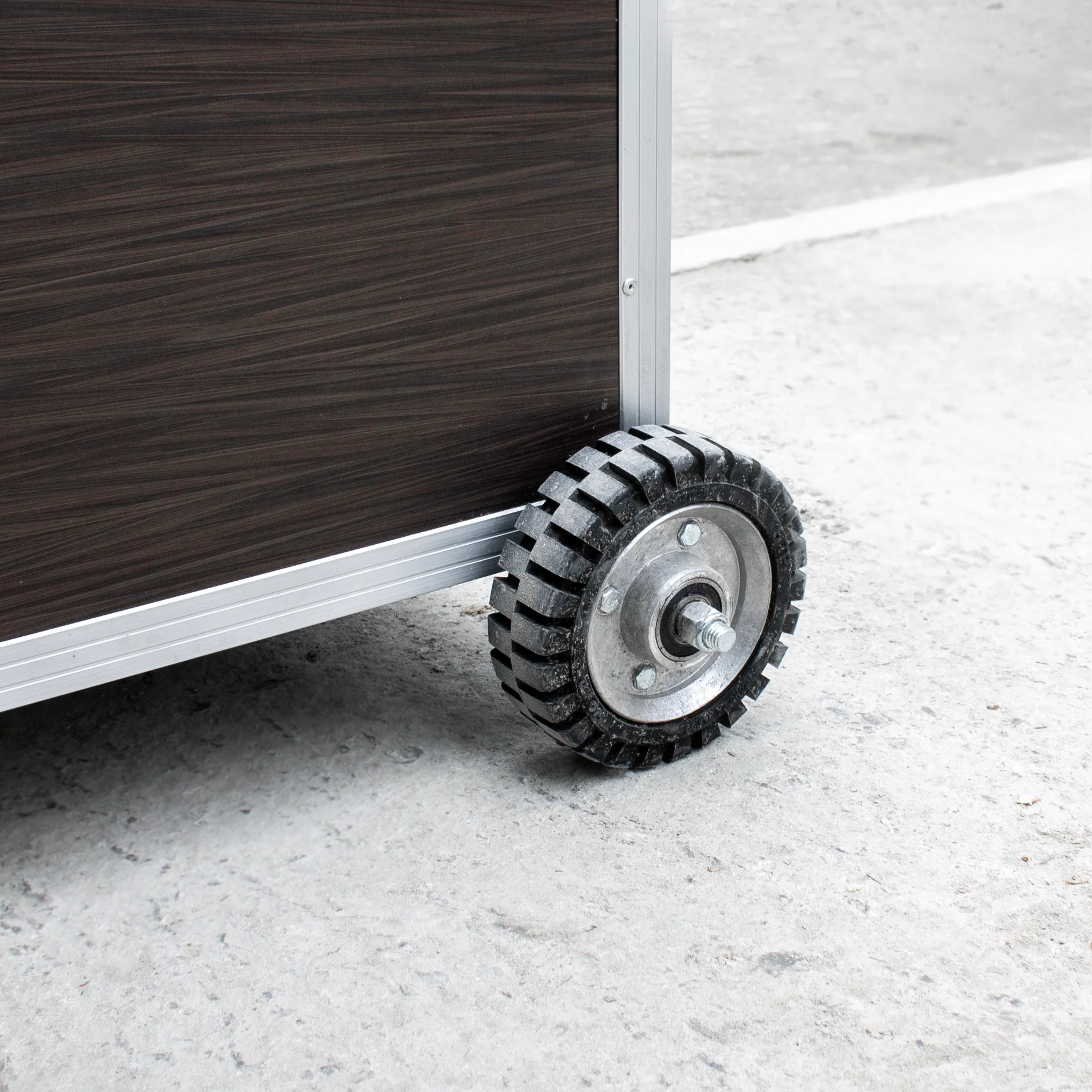 Material: Madera (Triplay) con marcos de aluminio. Exterior con acabado plastificado de color. Interior con textura impermeable.