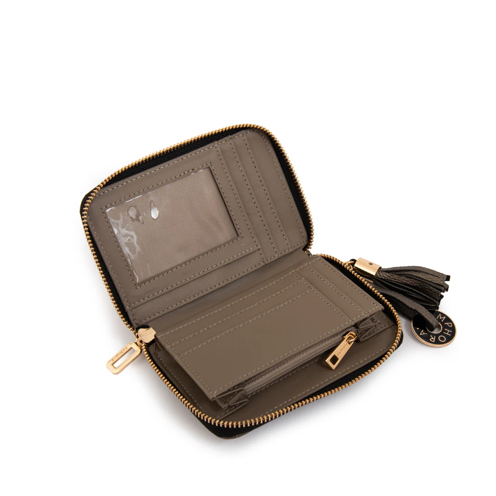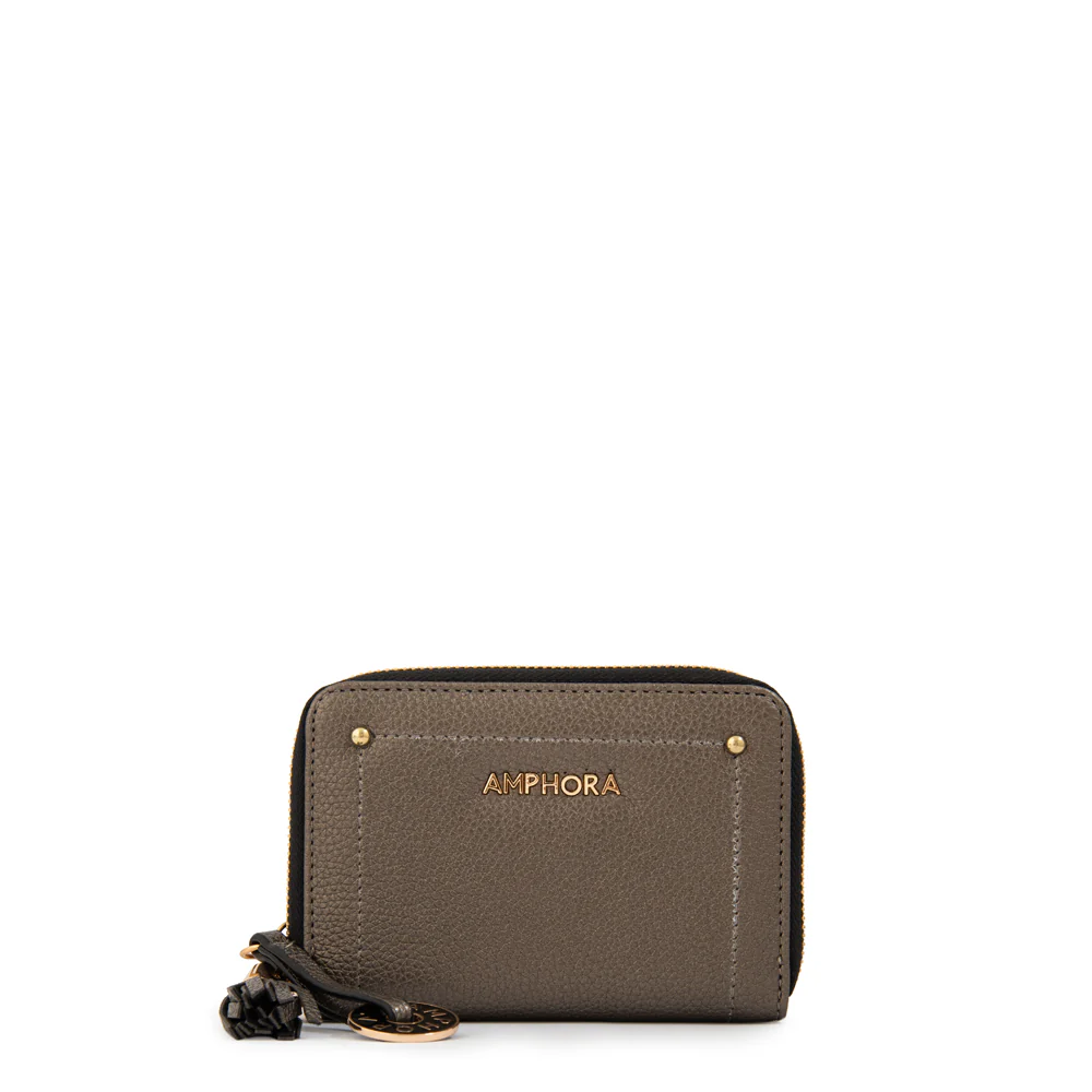 Metallic dreams. La billetera EtiopÃa plateado oscuro es un must para quienes aman los tonos brillantes. Su acabado en ecocuero graneado y su detalle de borla le aportan un toque especial a cualquier outfit.