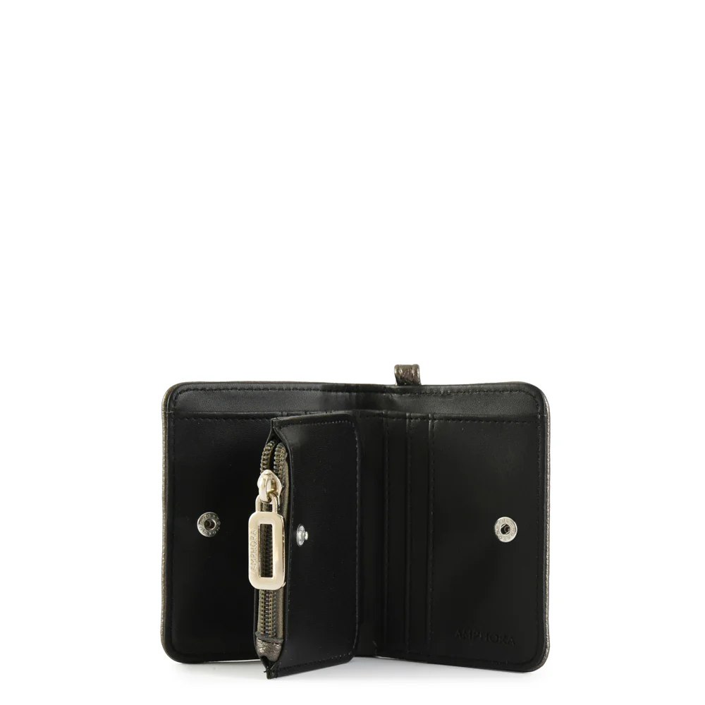 Nuestra billetera pequeña Alina es un imprescindible complemento a tu cartera. Este modelo de Amphora confeccionado en PU, tiene lo necesario para guardar tus essentials. Su diseño lady chic con un tono brillante, la hace muy especial. Su abertura es a través de cierre metálico y su interior tiene porta tarjetas, porta billetes y un bolsillo monedero con cierre. Súper funcional y cómoda para organizar tus cosas. Además, viene con un pequeño hanging de corazón. Perfect match!
