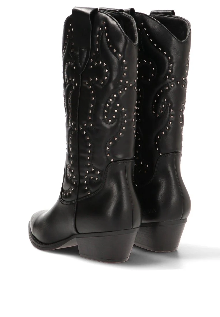 Versatilidad y Elegancia: Su elegante color negro y su diseño campero con tachas las convierten en un calzado extremadamente versátil. CombÃnalas con unos jeans ajustados, una falda midi o un vestido bohemio para crear looks con carácter y personalidad.