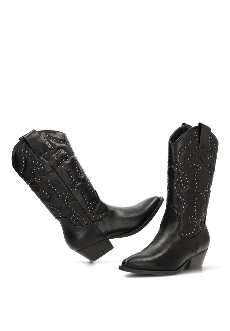 El detalle de tachas metálicas le da un aire audaz y vanguardista. La caña de 29 cm, que sube por la pantorrilla, alarga visualmente la pierna y le da a tu outfit un toque de audacia. El material exterior sintético es de alta calidad, resistente y fácil de cuidar. El cierre de cremallera es un detalle funcional que permite que te las pongas y te las quites de forma rápida y sencilla. ETIKA ha logrado un equilibrio perfecto entre la estética atemporal y las necesidades de la vida moderna.