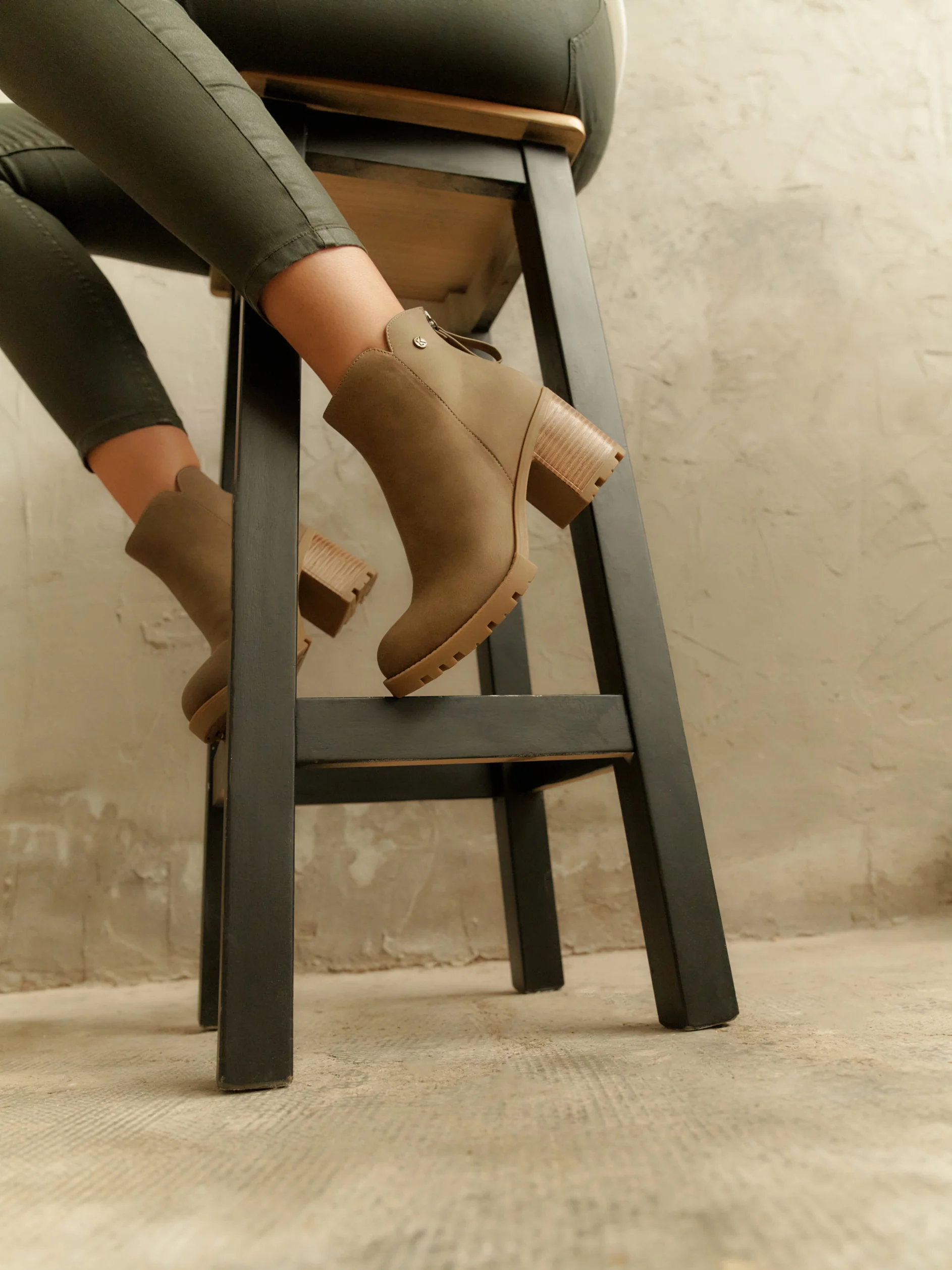 ¡Eleva tu estilo con un toque de elegancia! Nuestros botines ELBURG en taupe son perfectos para ti si buscas un calzado versátil y cómodo para cualquier ocasión.