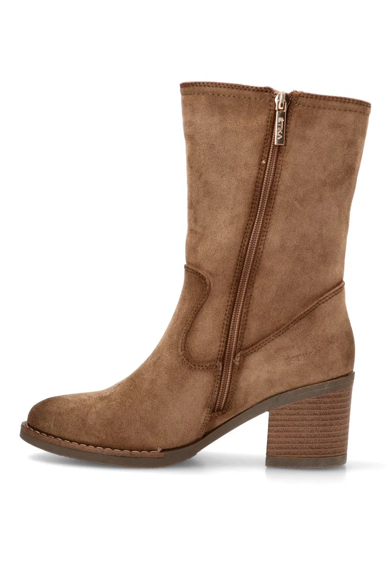 Este botÃn, con su distintivo y elegante color taupe, destaca por su originalidad. El material exterior de antelina le confiere un tacto suave y un acabado sofisticado. Su diseño campero se adapta perfectamente a una gran variedad de ocasiones, desde un festival de música hasta una salida de fin de semana.