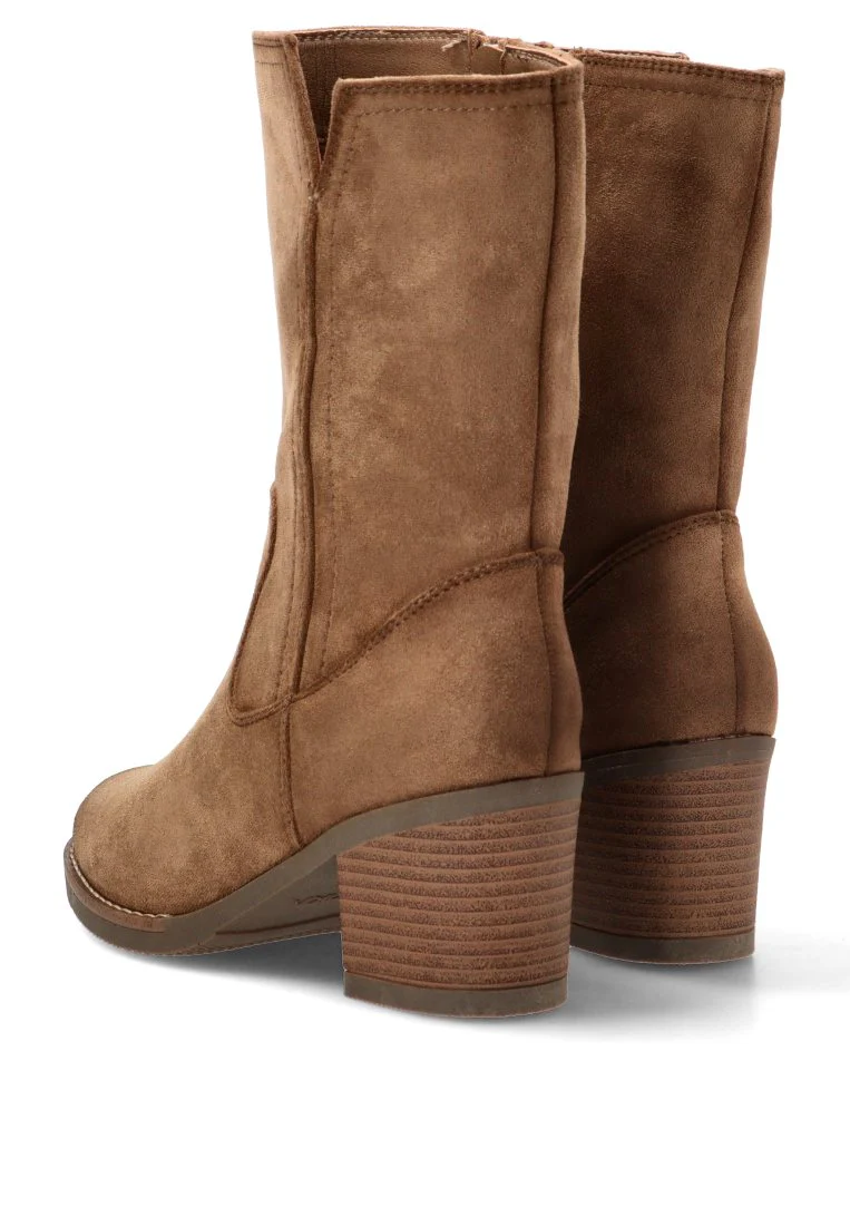El tacón medio de 6,5 cm proporciona una altura perfecta para estilizar la figura sin sacrificar la estabilidad, permitiéndote caminar con seguridad y confianza. La caña de 24 cm abraza el tobillo, creando una silueta limpia y favorecedora. El cierre de cremallera es un elemento funcional que permite que te los pongas y te los quites de forma rápida y sencilla. ETIKA ha logrado un diseño que no solo es hermoso, sino también funcional y fácil de usar.