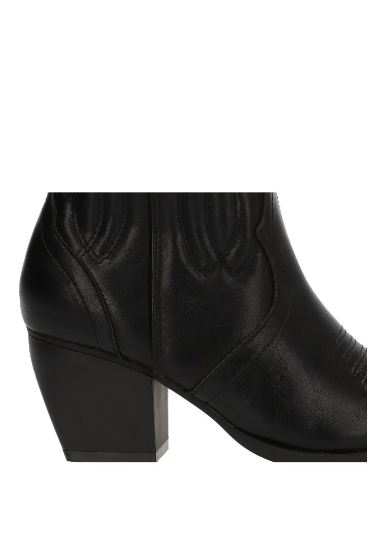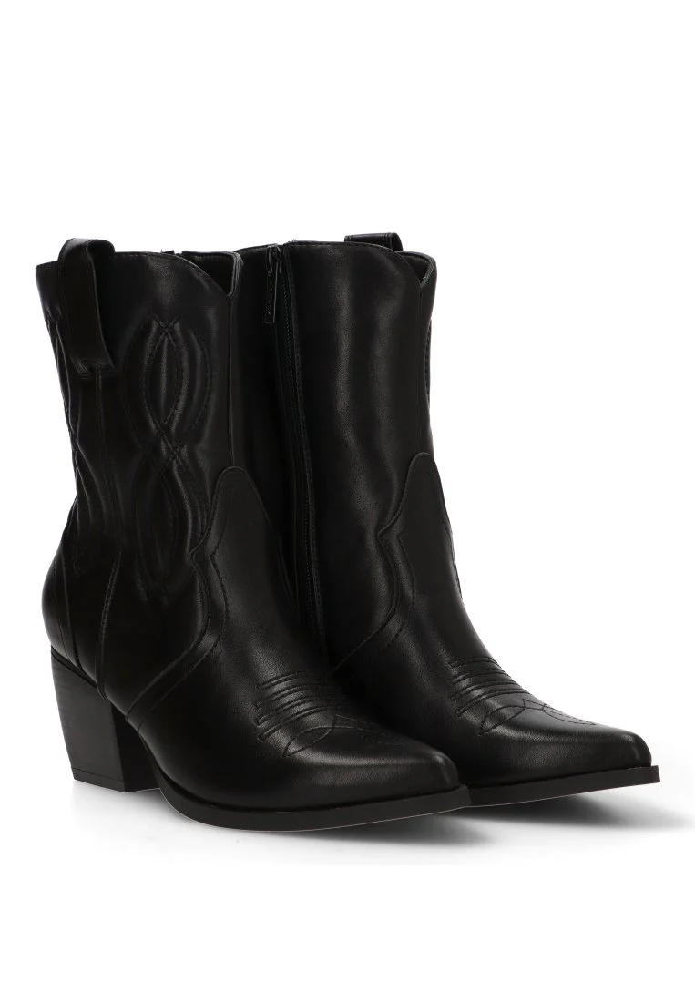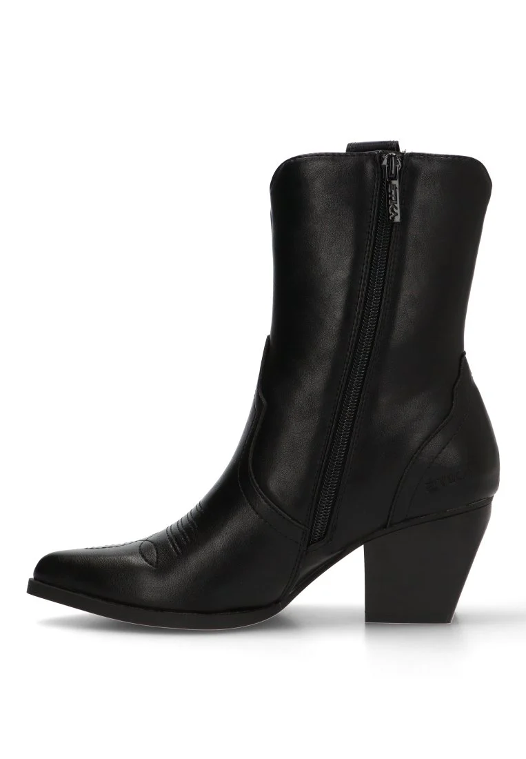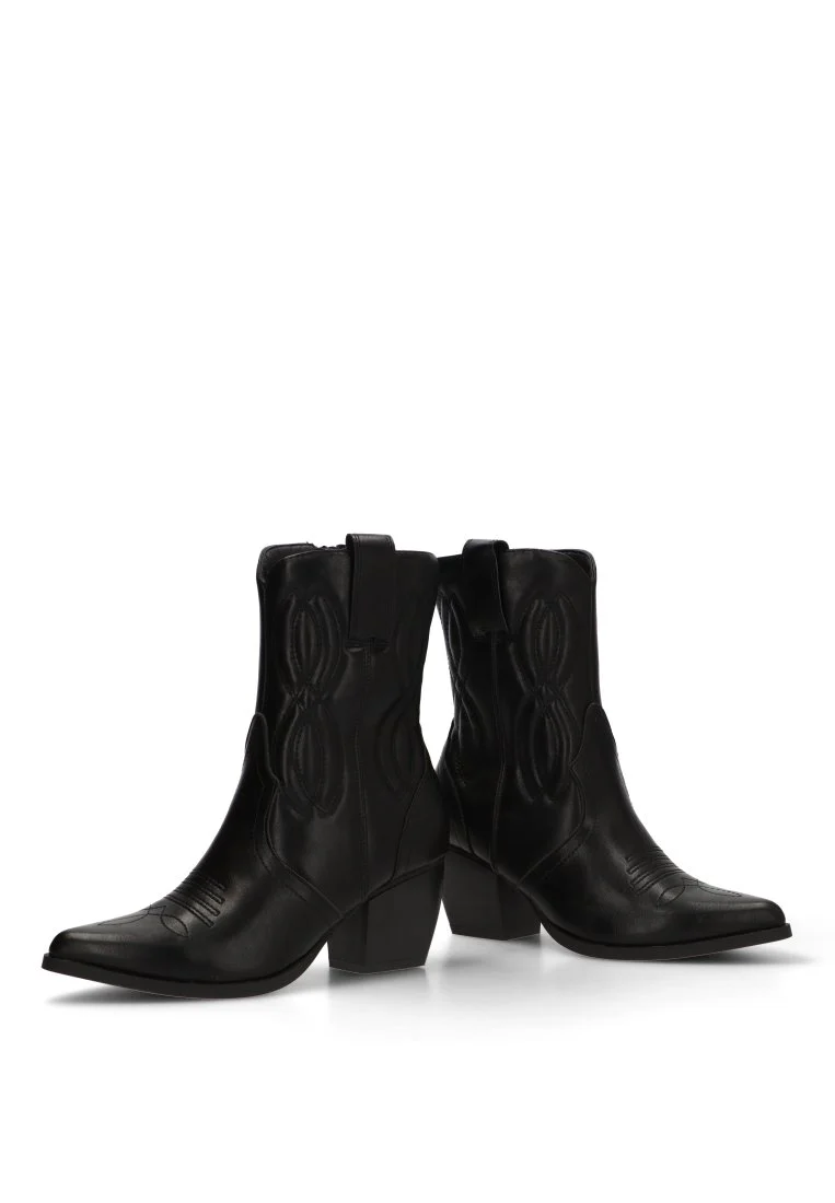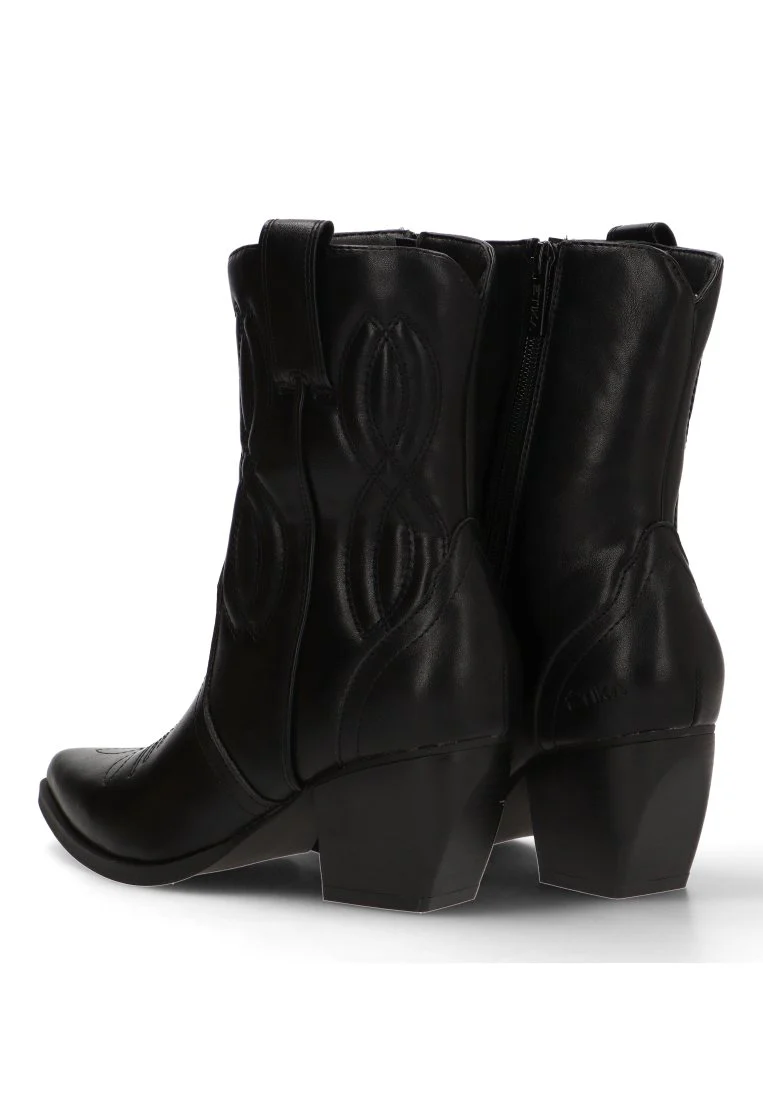 Este botÃn campero, con su distintivo y elegante color negro, es una apuesta segura para realzar tu estilo. Su diseño campero, reinterpretado de manera moderna, se adapta perfectamente tanto a ambientes casuales como a ocasiones más especiales. El tacón medio de 6,5 cm proporciona la altura ideal para estilizar la figura, manteniendo al mismo tiempo un gran confort y estabilidad, ideal para llevarlos durante todo el dÃa.