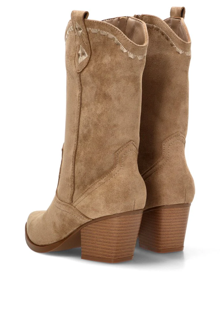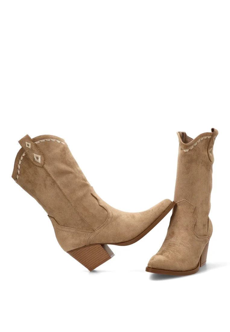 Este botÃn campero, con su distintivo y elegante color taupe, es una apuesta segura para realzar tu estilo. Su diseño campero, reinterpretado de manera moderna, se adapta perfectamente tanto a ambientes casuales como a ocasiones más especiales. El tacón medio de 6,5 cm proporciona la altura ideal para estilizar la figura, manteniendo al mismo tiempo un gran confort y estabilidad, ideal para llevarlos durante todo el dÃa.
