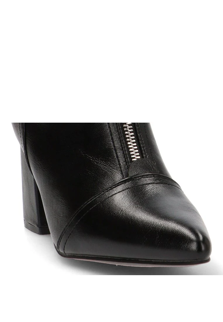 Este botÃn, con su distintivo y elegante color negro, es una apuesta segura para crear looks sofisticados y casuales a la vez. Su estilo weekend se adapta a una gran variedad de ocasiones, desde una jornada en la oficina hasta una salida con amigos. El tacón medio de 6,5 cm proporciona la altura perfecta para estilizar la figura sin sacrificar la estabilidad, permitiéndote caminar con seguridad y confianza. La caña de 19 cm, que sube por la pantorrilla, alarga visualmente la pierna, creando una silueta limpia y favorecedora.