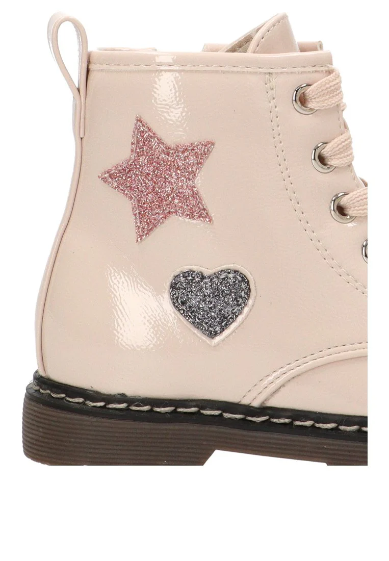 Presentamos el BotÃn Estrella y Corazón Hada 10620 de ETIKA, el calzado perfecto para las pequeñas que sueñan con aventuras y se visten con estilo. Este modelo combina la fuerza del diseño militar con la dulzura de los detalles más encantadores, creando un botÃn único para las niñas con personalidad.