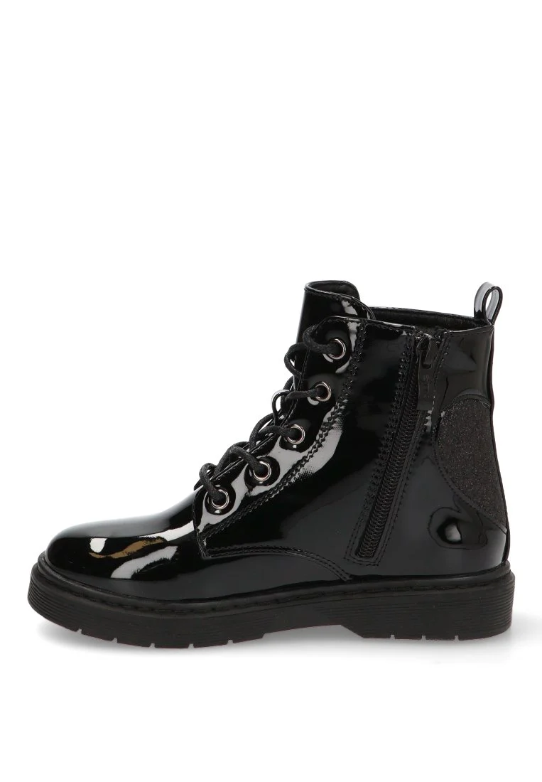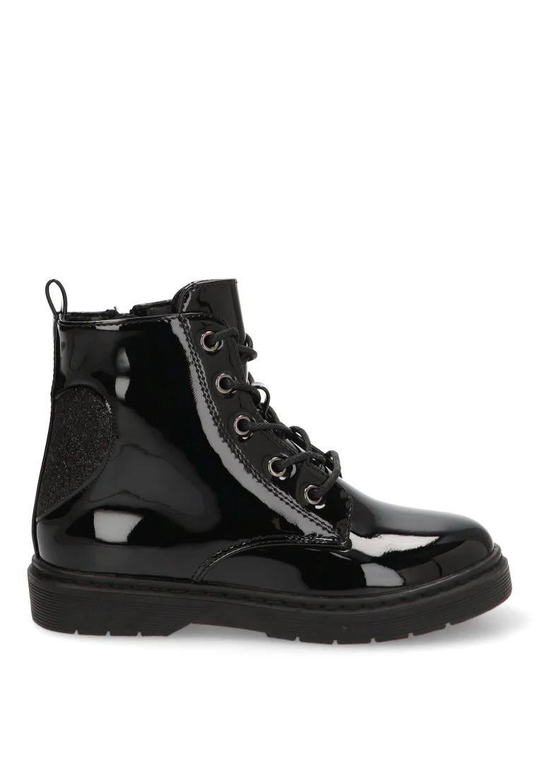 Este botín, en un clásico y versátil color negro, destaca por su llamativo acabado con brillo glitter que lo hace único y especial. El estilo militar le da un toque de fuerza y personalidad, mientras que los cordones permiten un ajuste perfecto y seguro, ideal para las pequeñas exploradoras. La caña de 11 cm ofrece el soporte necesario para el tobillo, sin restringir la libertad de movimiento.