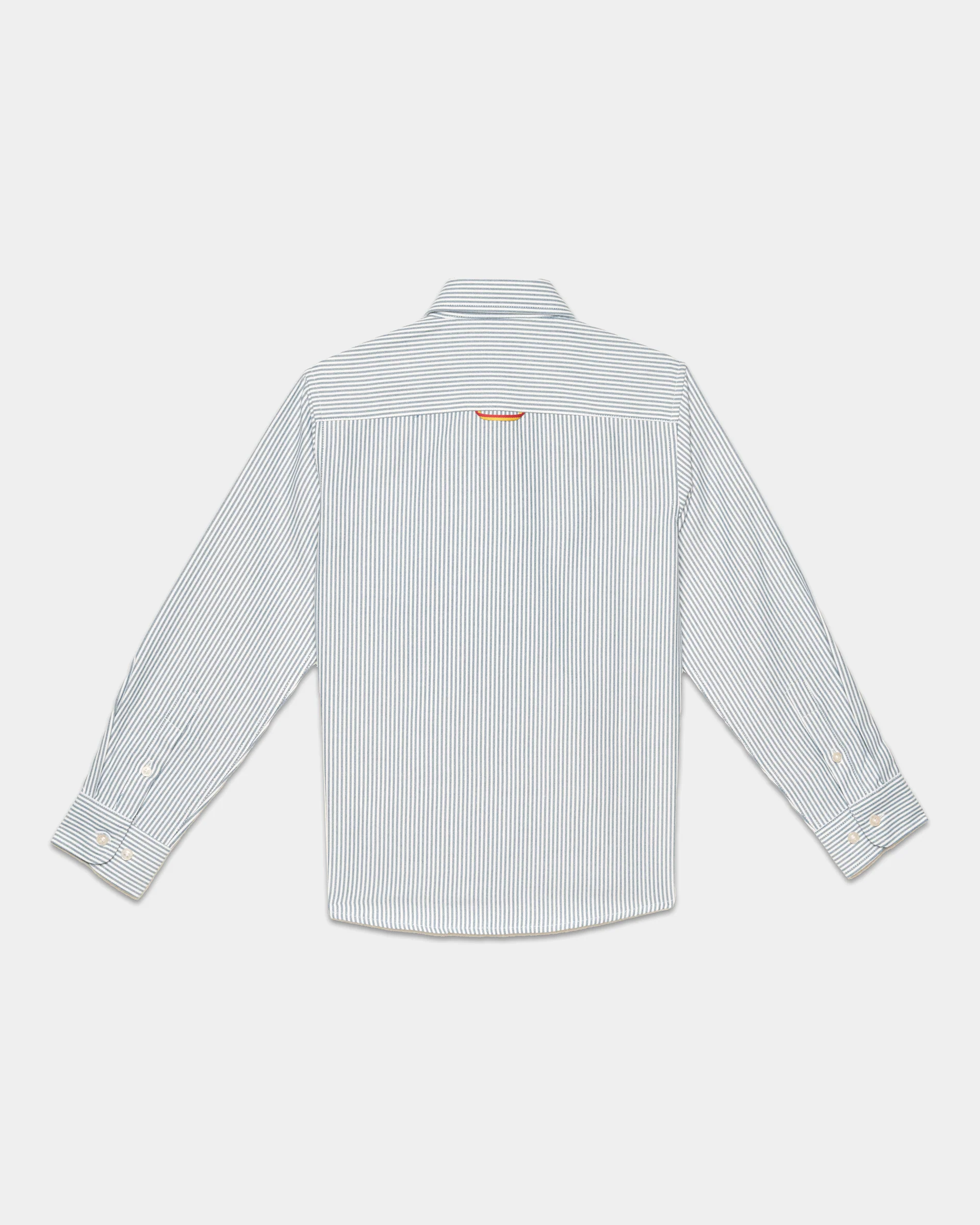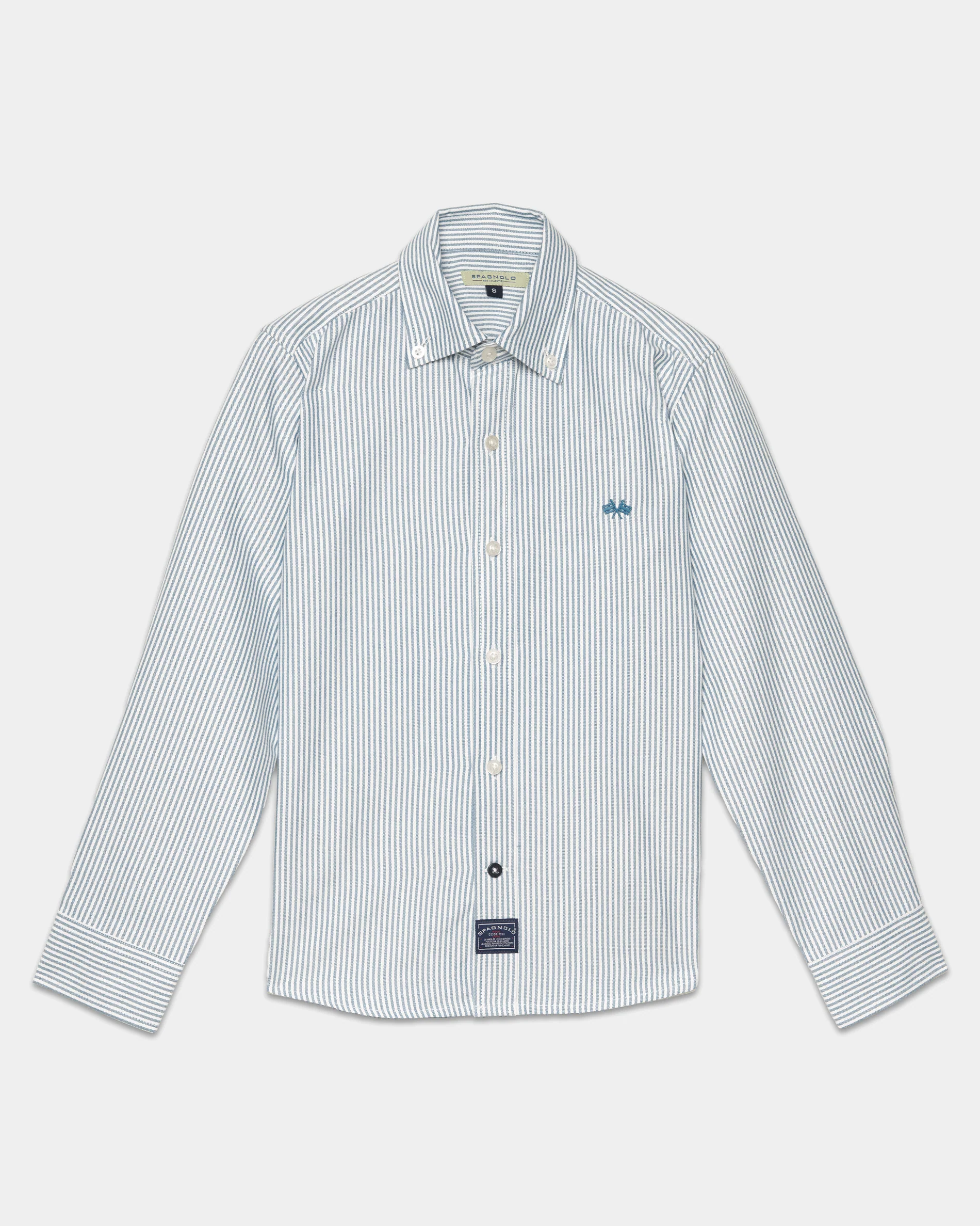 💚Camisa Oxford de raya ancha verde niño 4 años a 14 años. Modelo confeccionado en tejido de camisa, disponible en color celeste . Una prenda práctica y versátil, perfecta para acompañar su día a día con estilo.