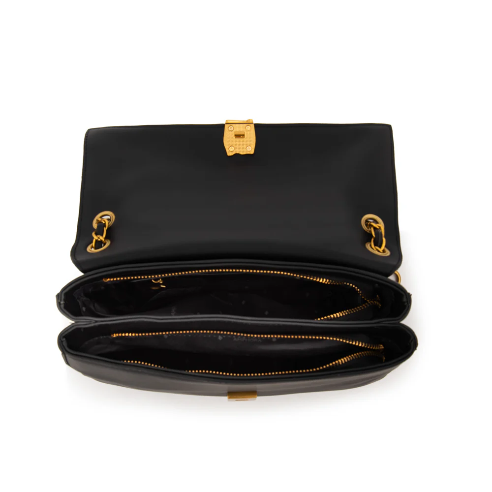 Keep slaying con la bandolera #Estonia. Esta combina un diseño elegante y práctico para que se transforme en tu nueva bandolera Amphora favorita . Hecha de cuero vegano en color negro especial, cuenta con una correa ajustable para llevarla como más te guste y un elegante cierre con broche. Organiza tu día con estilo gracias a su bolsillo exterior y 3 compartimentos internos. Perfecta para un estilo casual chic que se adapta a cualquier ocasión.