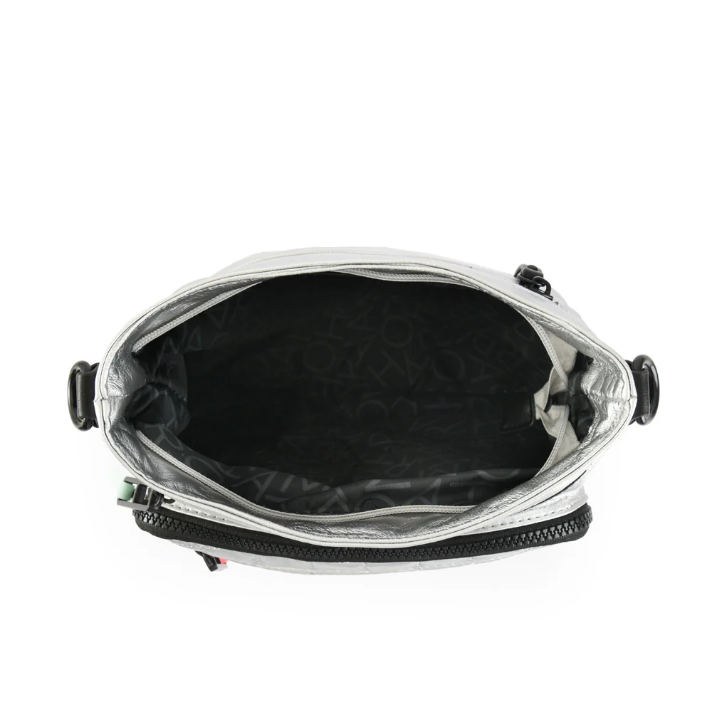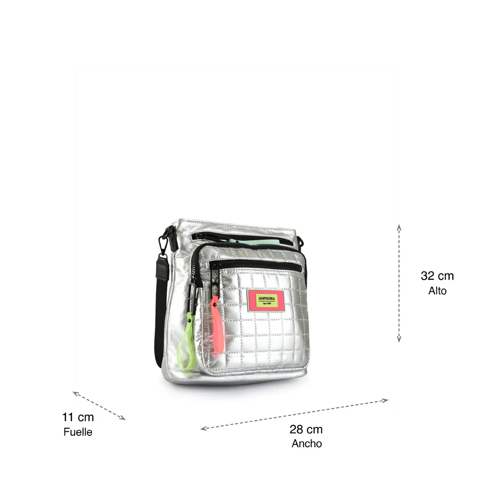 In love with Volendam, su diseño viene definitivamente de otra galaxia con su textura metálica. Fabricada en Nylon, esta bandolera se roba las miradas por donde camines. De tamaño grande, posee tres bolsillos internos y cuatro externos, además su correa es regulable para tu máxima comodidad. ¿Cómo si fuera poco? Cada cierre tiene detalles de goma en colores fluor que le da toda la onda. Volendam we love you!