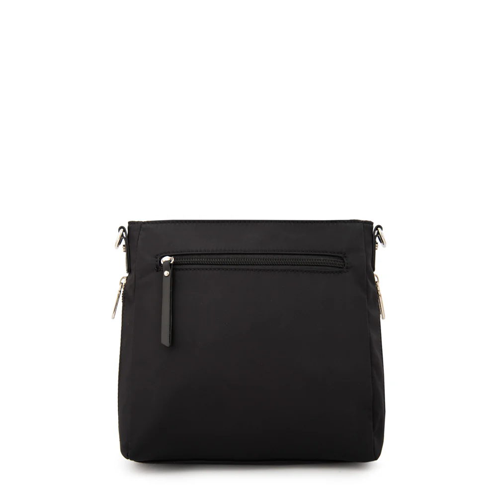 Keep it simple, keep it stylish. La versión en nylon negro especial de la bandolera Madrid suma ligereza y practicidad a cualquier look. Su diseño funcional con cierre seguro y correa ajustable la hacen perfecta para moverte con libertad. Fácil de llevar, difícil de dejar.