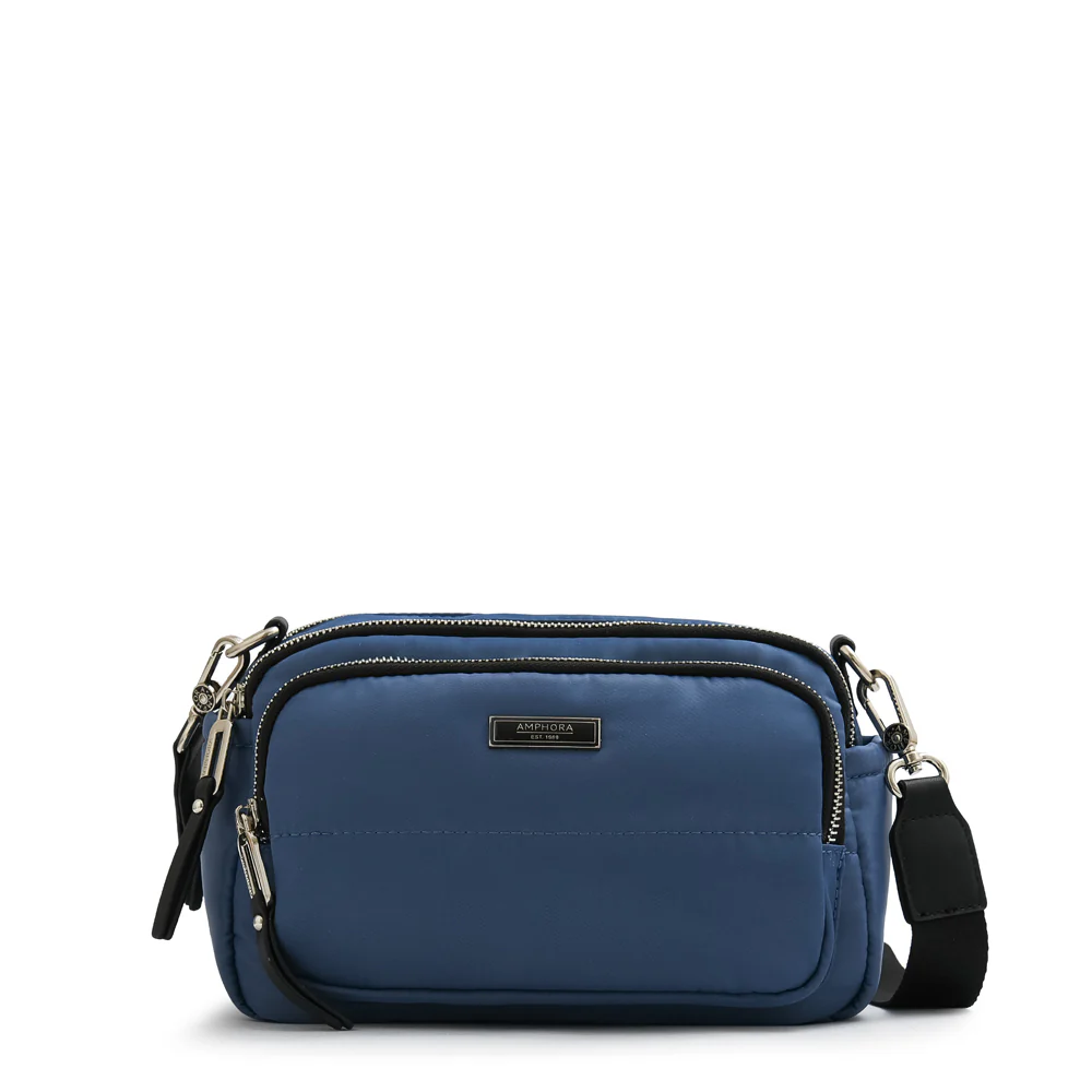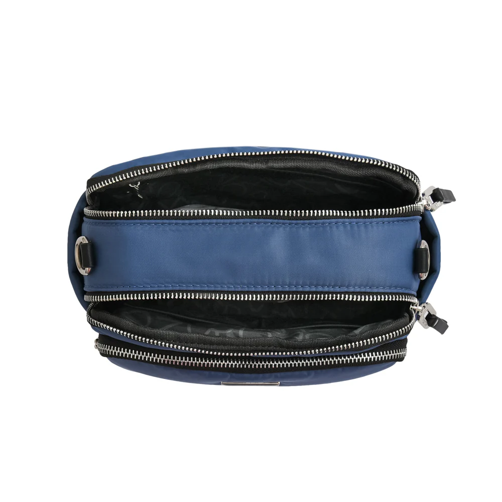 Small bag, big impact. La bandolera Nauru en azul oscuro es compacta, funcional y perfecta para moverte con libertad. Su diseño incluye tres bolsillos externos y tres internos para que lleves todo en orden, además de un cierre seguro y una correa ajustable para mayor comodidad. Make it yours today!