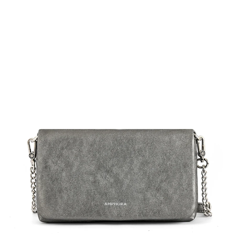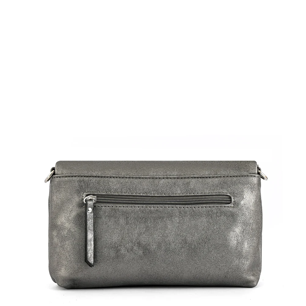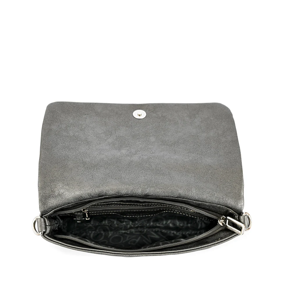 When in doubt, go for #Henry. Esta bandolera confeccionada en ecocuero desgastada plateada oscura, es el complemento que necesitas para destacar en cualquier evento. Su diseño sofisticado, con múltiples bolsillos (1 exterior y 3 interiores), te permite llevar tus esenciales organizados y a mano. La correa ajustable y extraíble te brinda versatilidad para adaptarla a tu look. Átrevete a ser diferente y brilla en cada fiesta con #Henry.