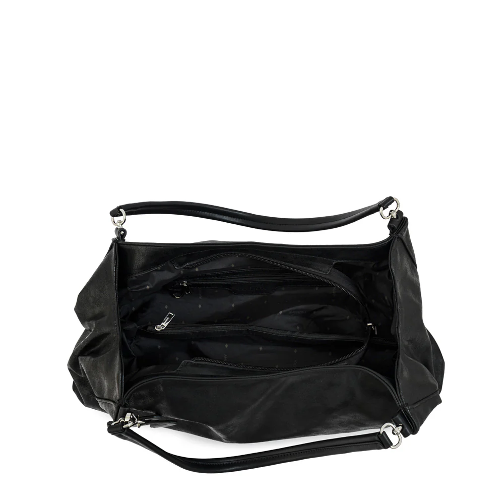 Cuando pensamos en la cartera dos asas Aretha, podemos decir que combina lo mejor de los estilos. Este modelo de Amphora confeccionada en PU graneado, sus detalles marcarán presencia por donde la lleves. De tamaño grande, posee cuatro bolsillos internos, dos externos y uno en su parte trasera con cierre. Además viene con dos predominantes asas y una correa adaptable al largo que quieras. Este modelo te acompañará a todas. Aretha, you are welcome!