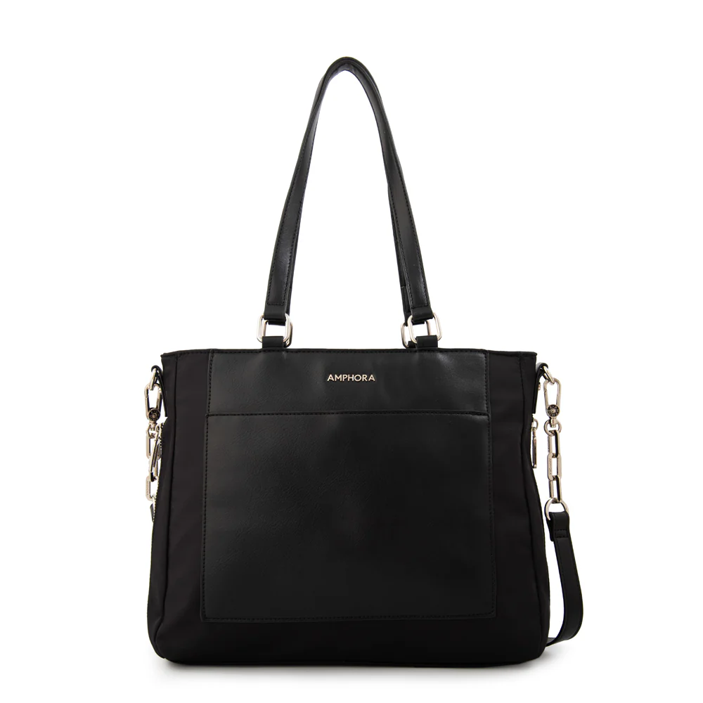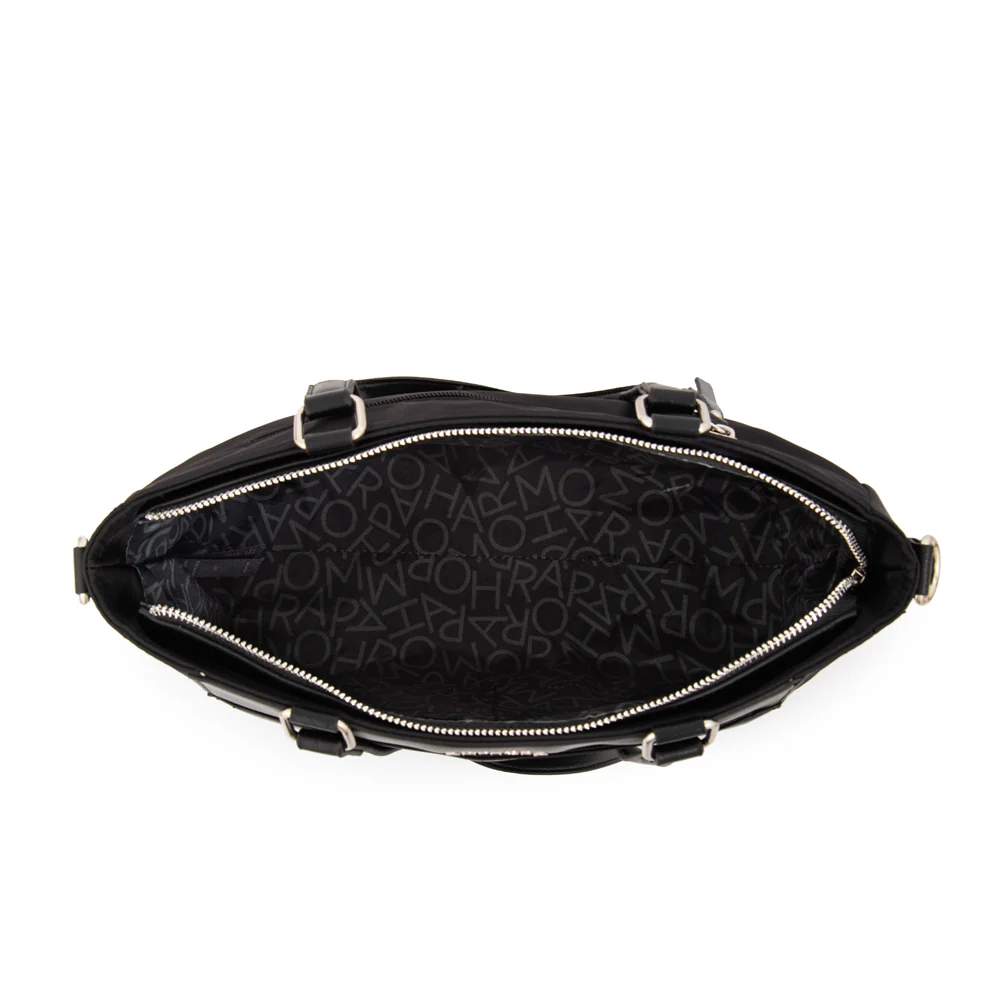 Make space for more! La versión en nylon negro especial de la cartera Madrid combina ligereza y capacidad en un solo diseño. Su estructura resistente, su cierre seguro y sus dos asas cómodas la convierten en una opción infalible para el día a día. Llévala a todas partes y disfruta de su practicidad.