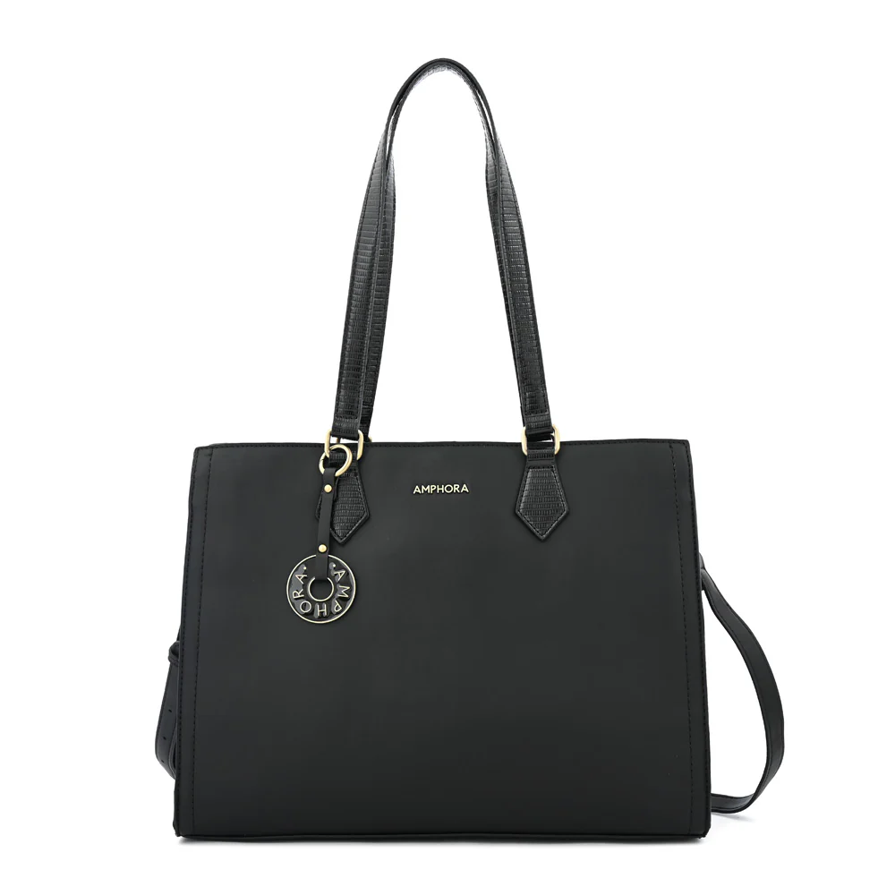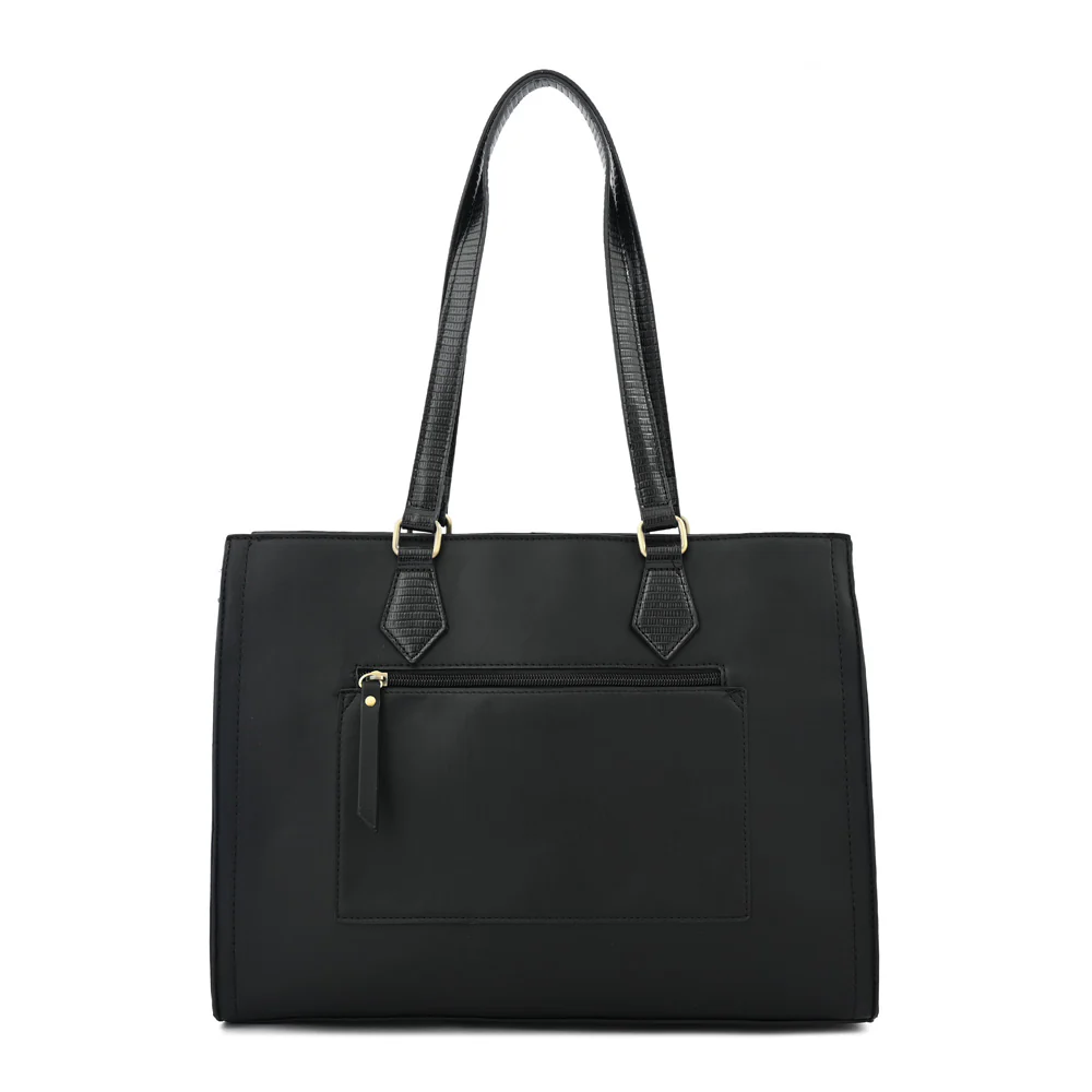 Nuestra cartera dos asas Nila está pensada para ser tu partnet in crime. Ideal para combinar con tus outfits más chics, está confeccionada en PU liso y es de tamaño grande. Nila viene con tres bolsillos internos, uno externo y uno en la parte trasera. Además de una tapa en su apertura. Cuenta con sus dos asas predominantes y un strap ajustable, ideal para llevar a la oficina, dado que posee un espacio perfecto para transportar el notebook. ¿Su bonus track? El colagente añadido como accesorio, we all need a Nila!