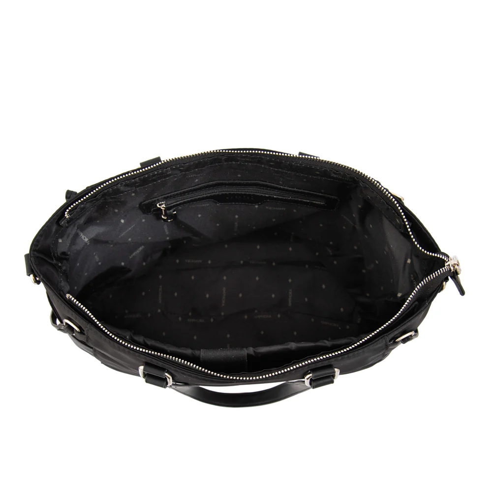 Pensada para la rutina diaria, la cartera Romina ofrece espacio seguro para tu notebook de 13” y esenciales personales. Su correa ajustable la convierte en un accesorio cómodo para jornadas largas.