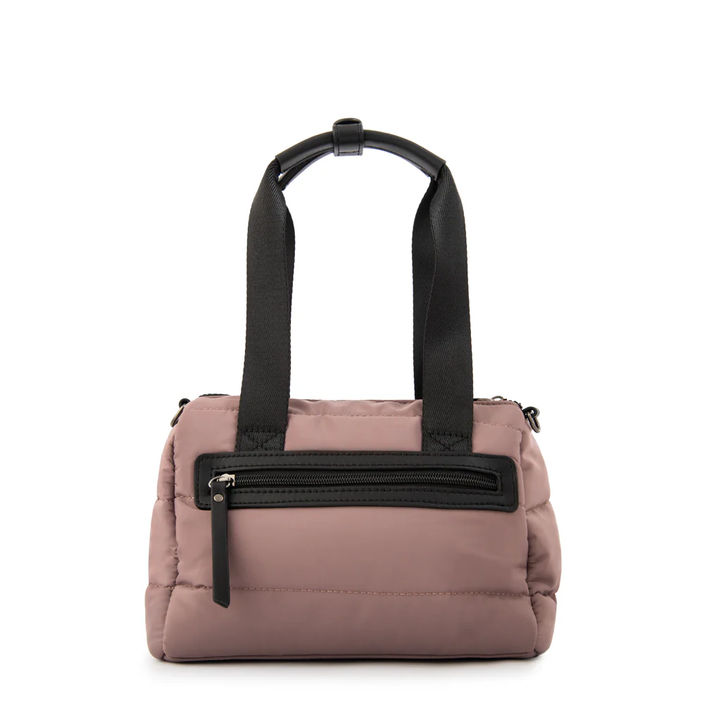 Bolso Trinus acolchado rosa viejo. Diseño funcional con asas reforzadas, bolsillos frontales y correa ajustable. Ideal como regalo útil y con estilo para el día a día.