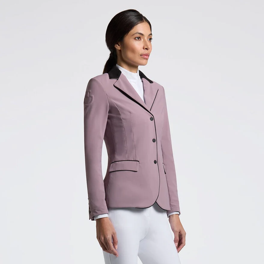 - La chaqueta de competición para mujer Cavalleria Toscana presenta un diseño clásico y ajustado, refinado con cuello y ribete de alcántara en color de contraste.