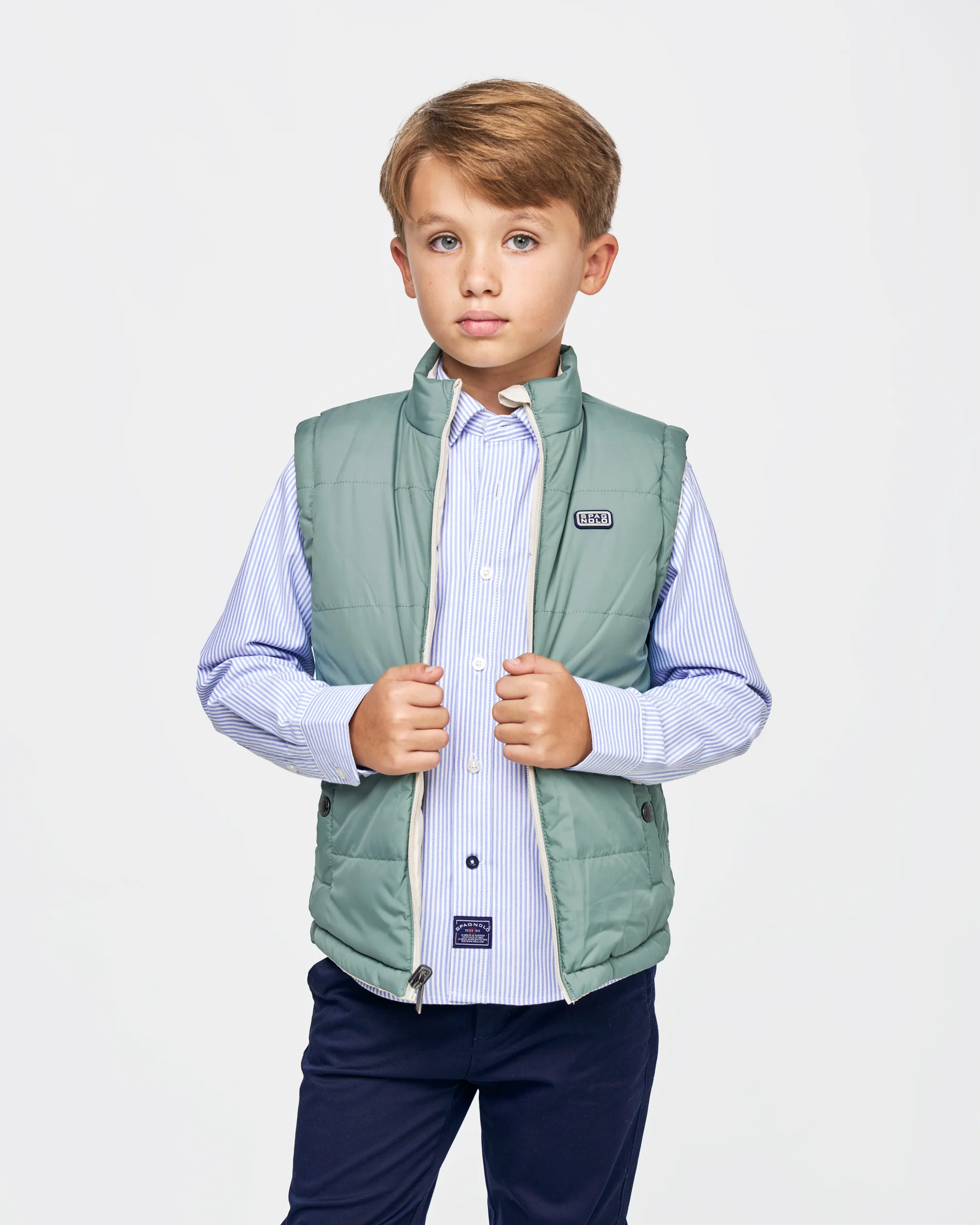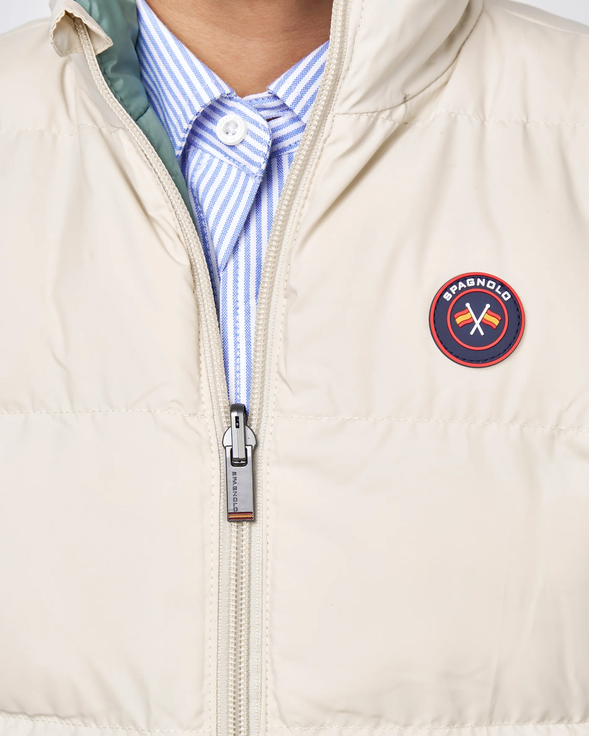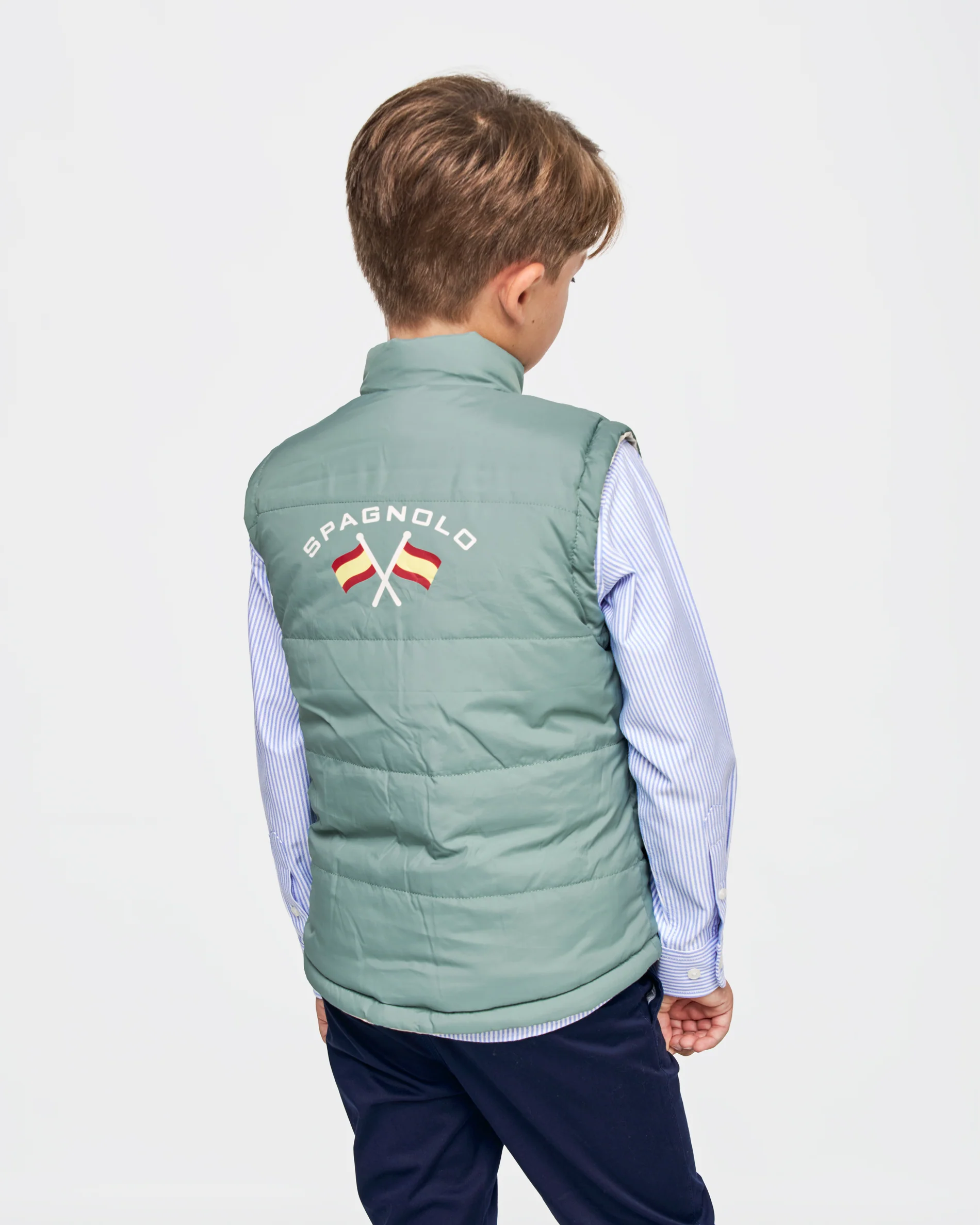 💚chaleco reversible beige y por el otro lado verde.