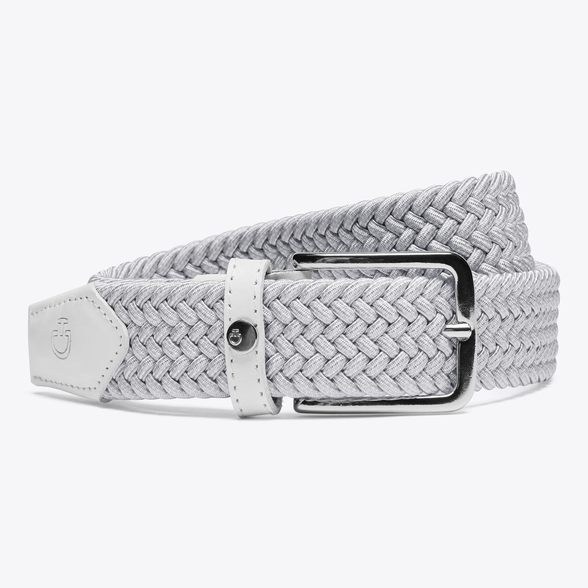 - Cinturón elástico trenzado elegante y contemporáneo con hebilla Equiline plateada.