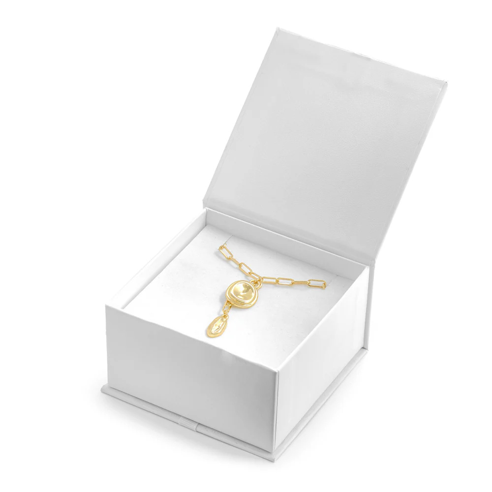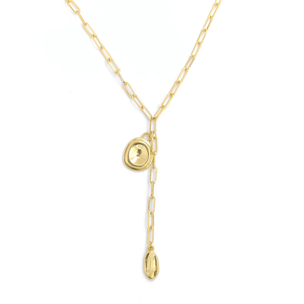 Own your glow! Con el collar #Alya, perfecto para quienes buscan un accesorio con presencia y significado. Con un colgante sutil pero con carácter, este diseño en metal con baño de oro 18K resalta cualquier look con un toque de luz. Su cadena con cierre de broche garantizan comodidad y ajuste seguro. Si lo tuyo es llevar accesorios con actitud, el collar dorado #Alya es la mejor elección.