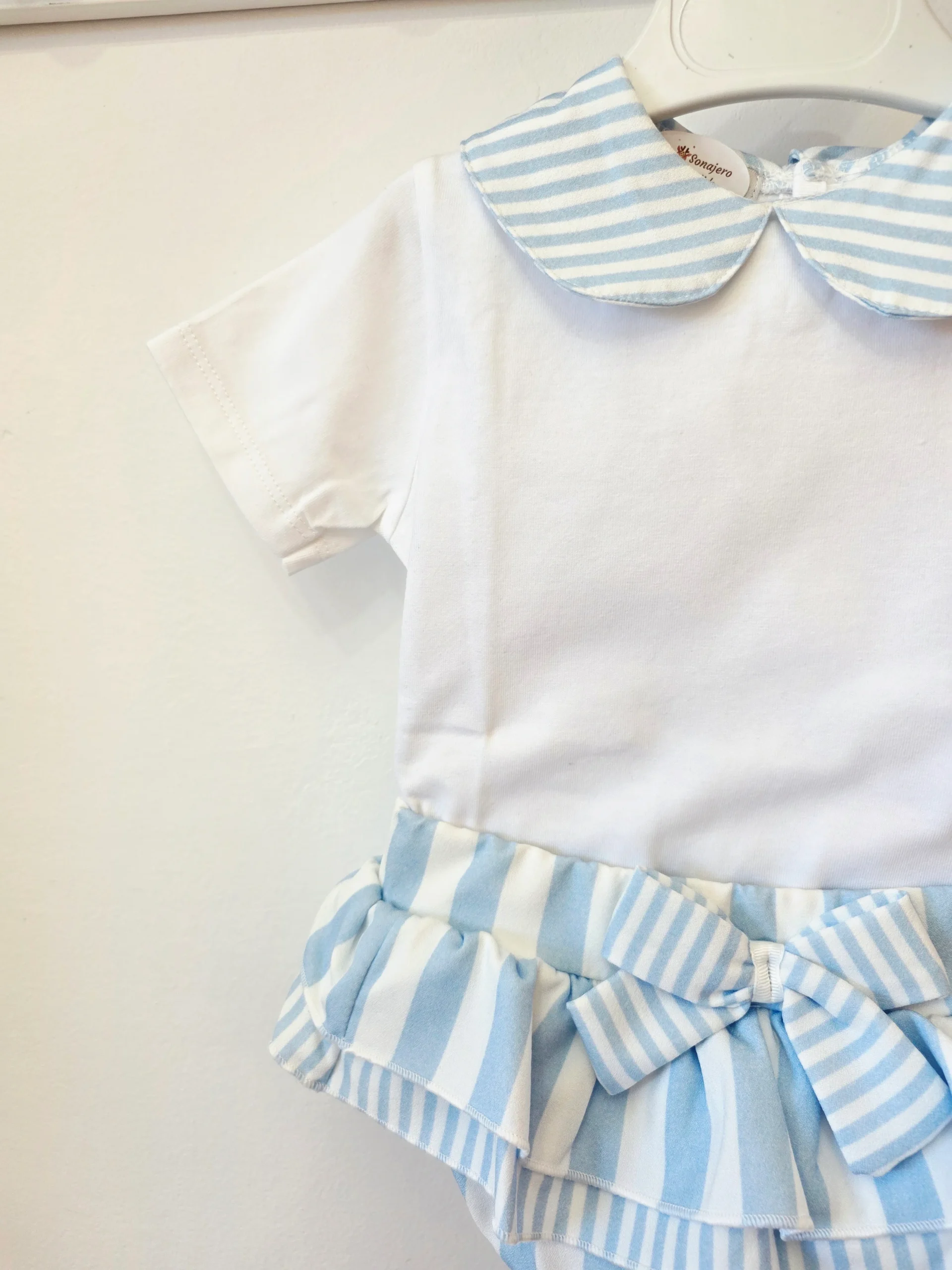 Conjunto de Punto y Estampado Botánico Un diseño lleno de ternura que combina la calidez del punto artesanal en tono piedra con la delicadeza de un estampado floral suave. El detalle del cuello bebé y los bombachos a juego crean un look clásico, cómodo y perfecto para ocasiones especiales o paseos inolvidables.