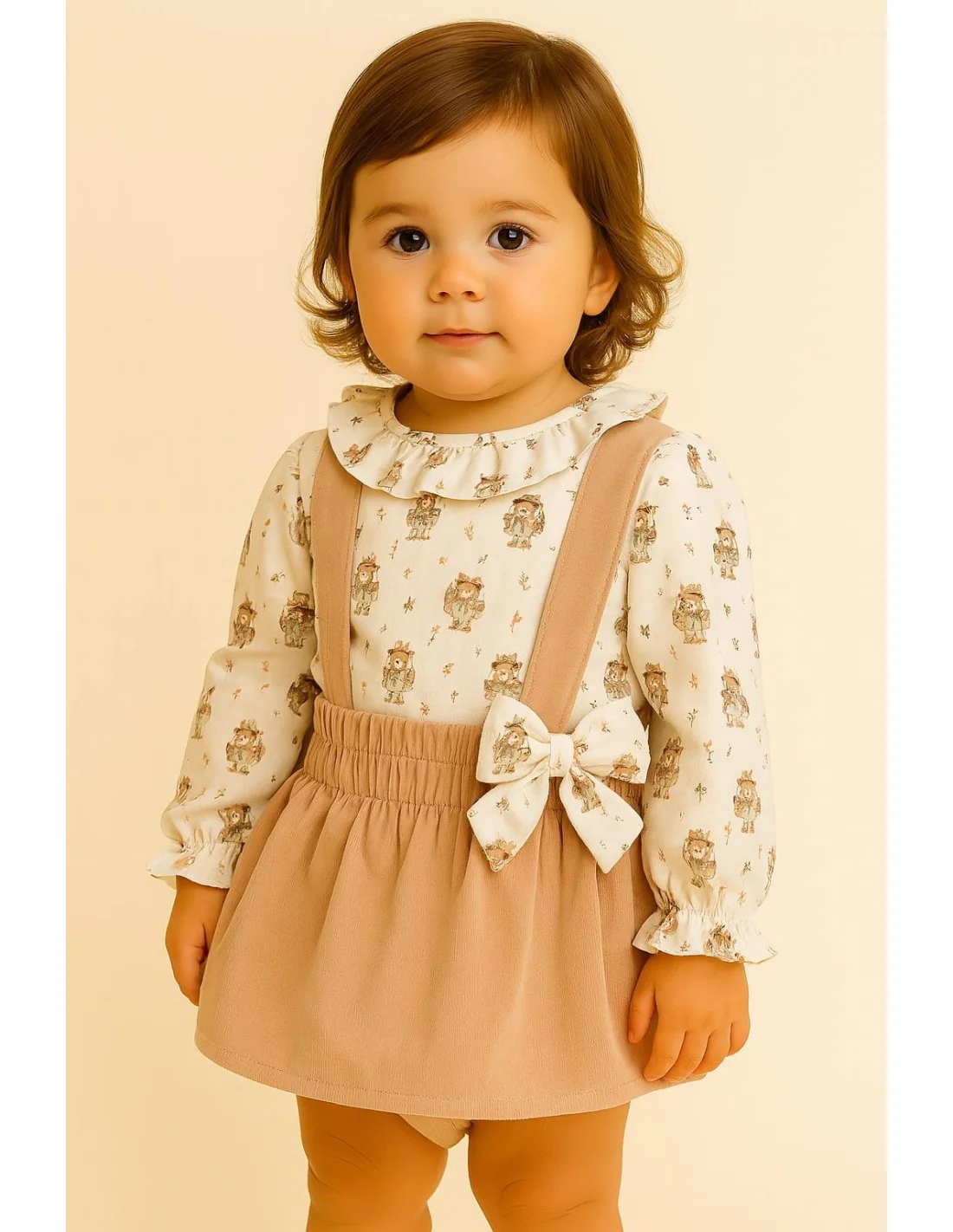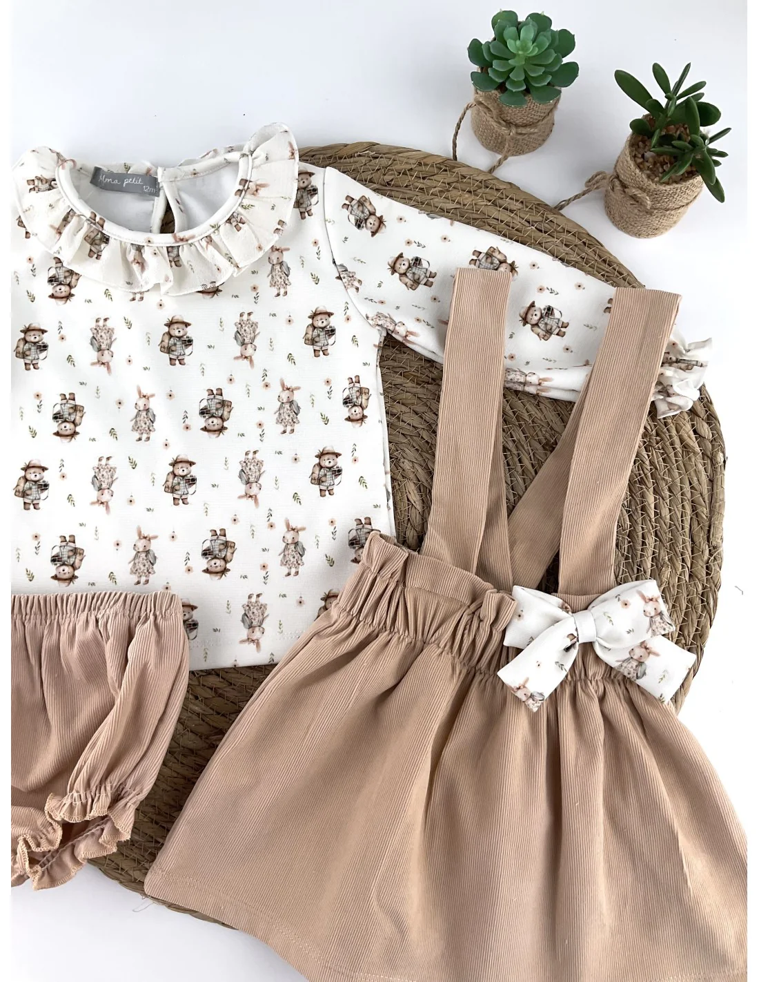 Conjunto de camisa, braguita y peto con lazo.