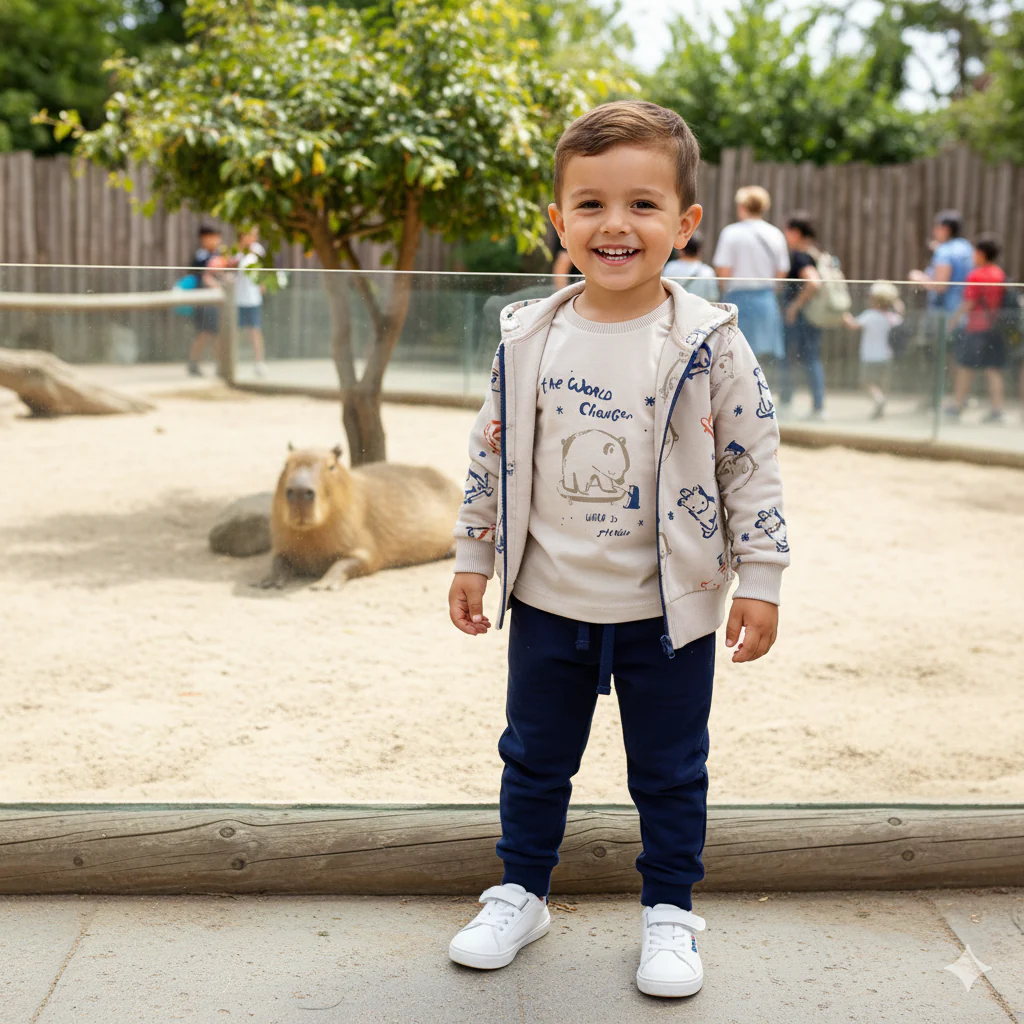 Conjunto 3 piezas de chaqueta con gorro, pantalón y camiseta.