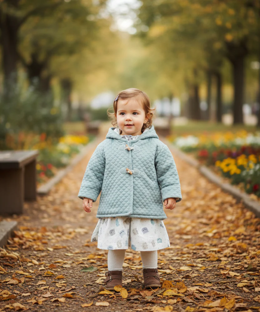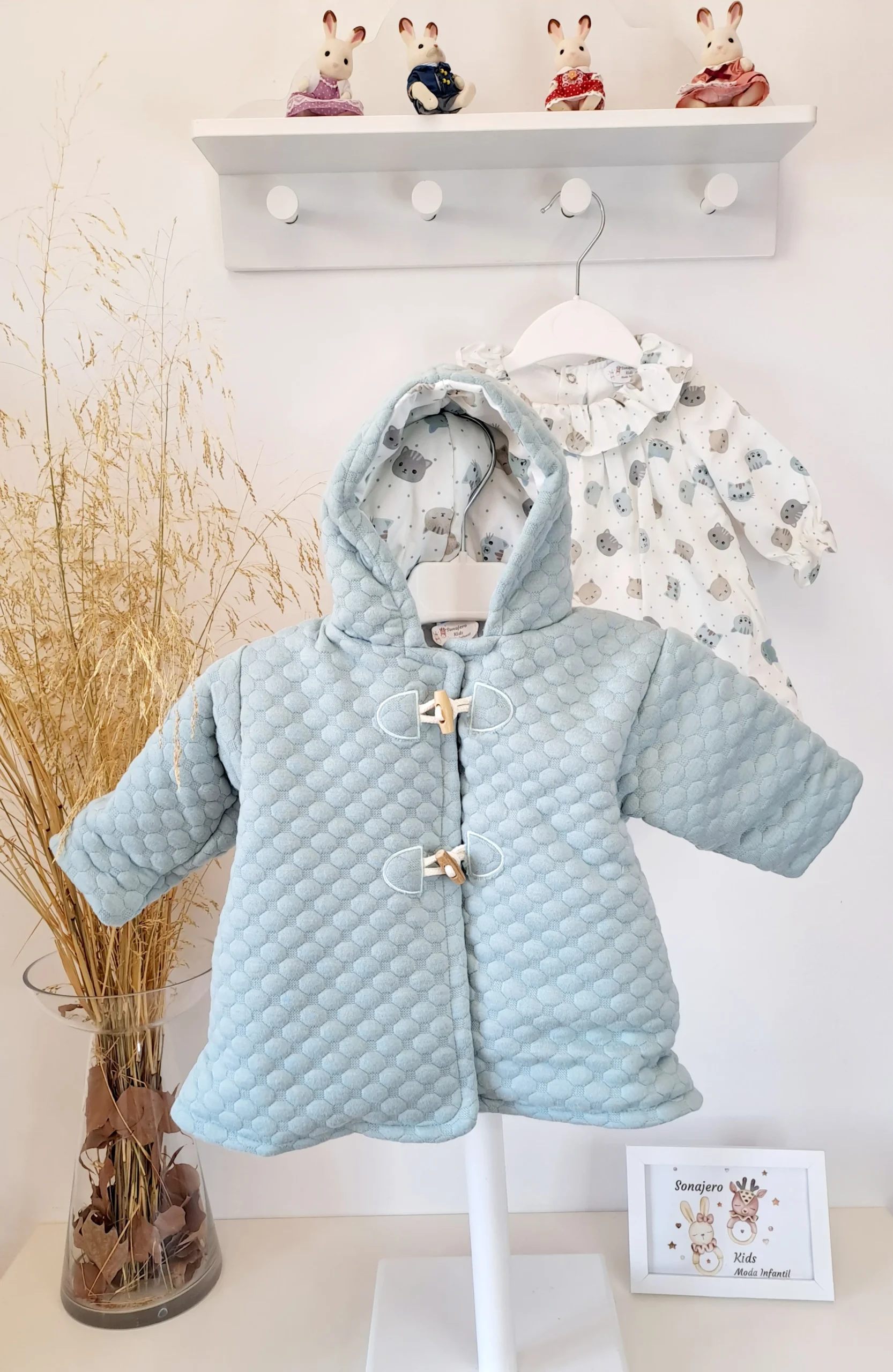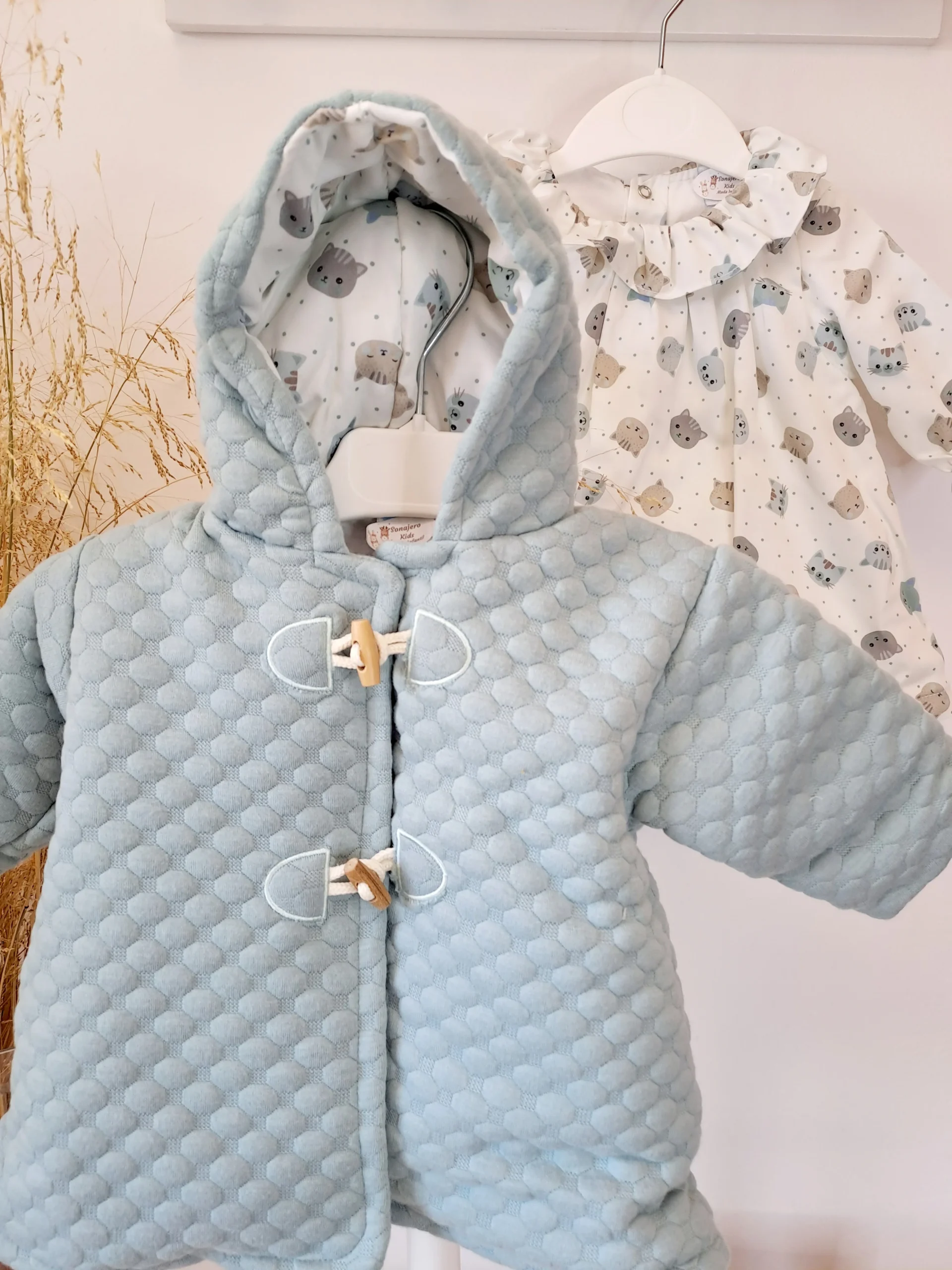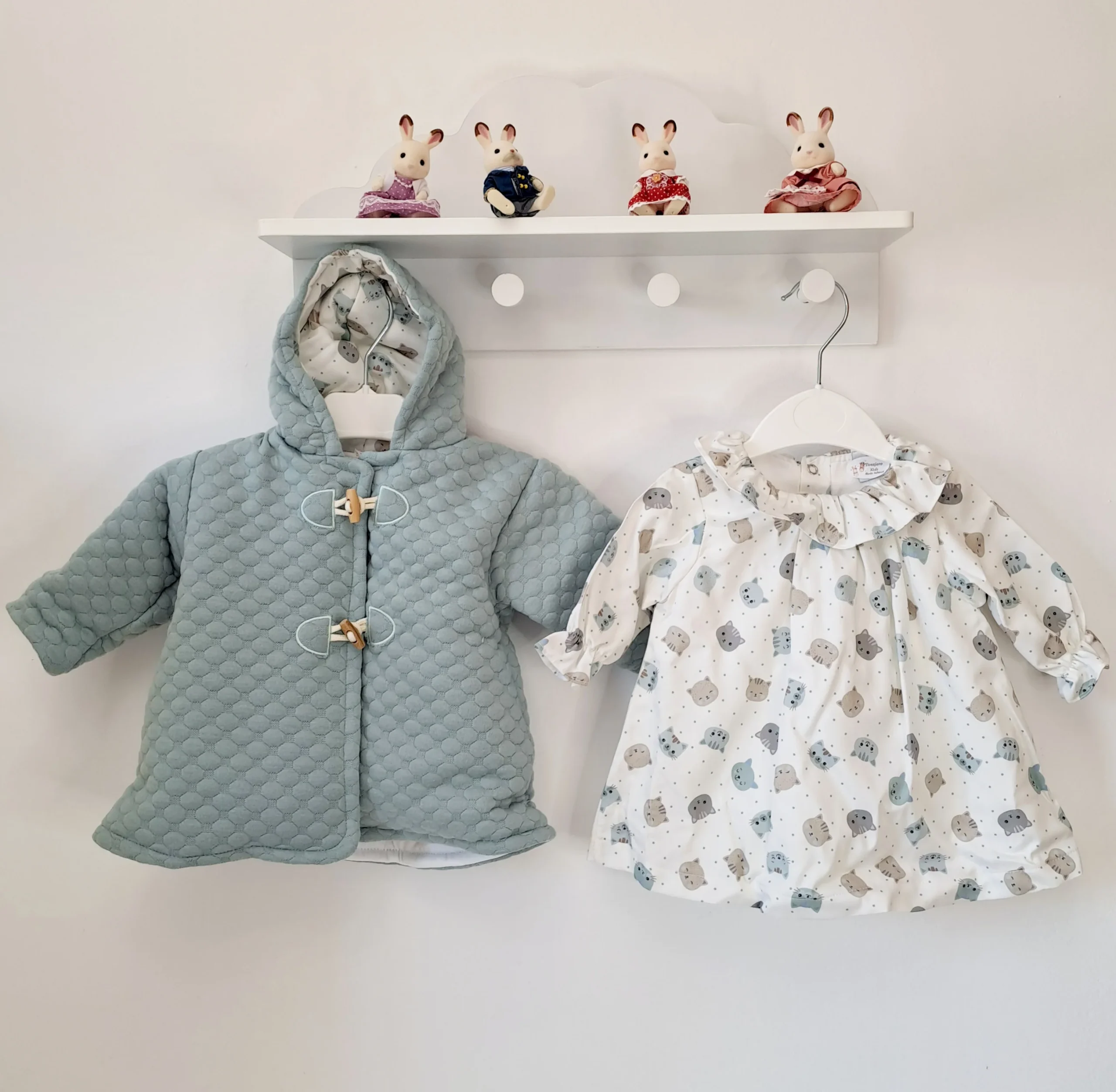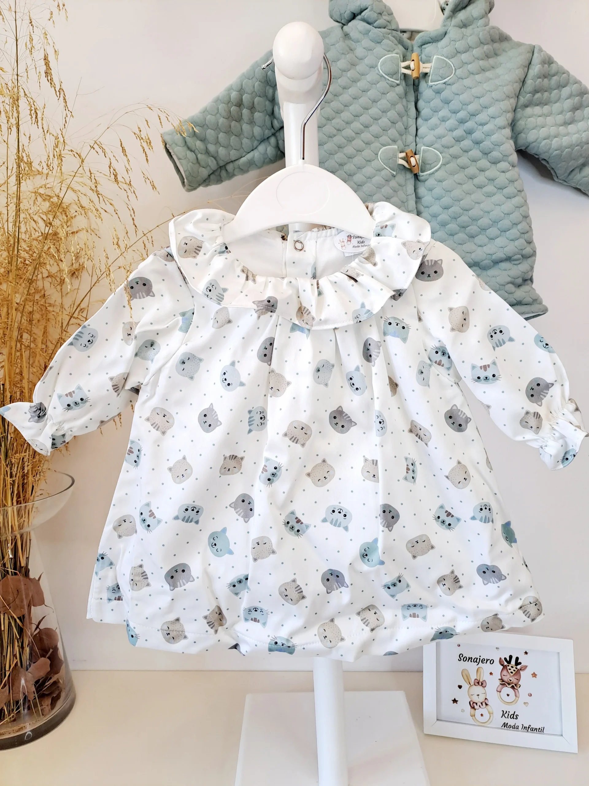 Conjunto vestido con abrigo de guata color verde empolvado