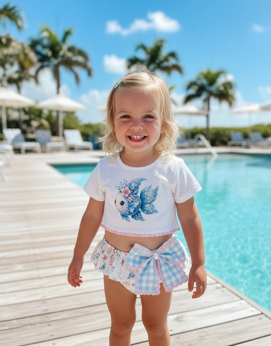 Conjunto camiseta algodón y braguita bañador con volante y lacito 💚