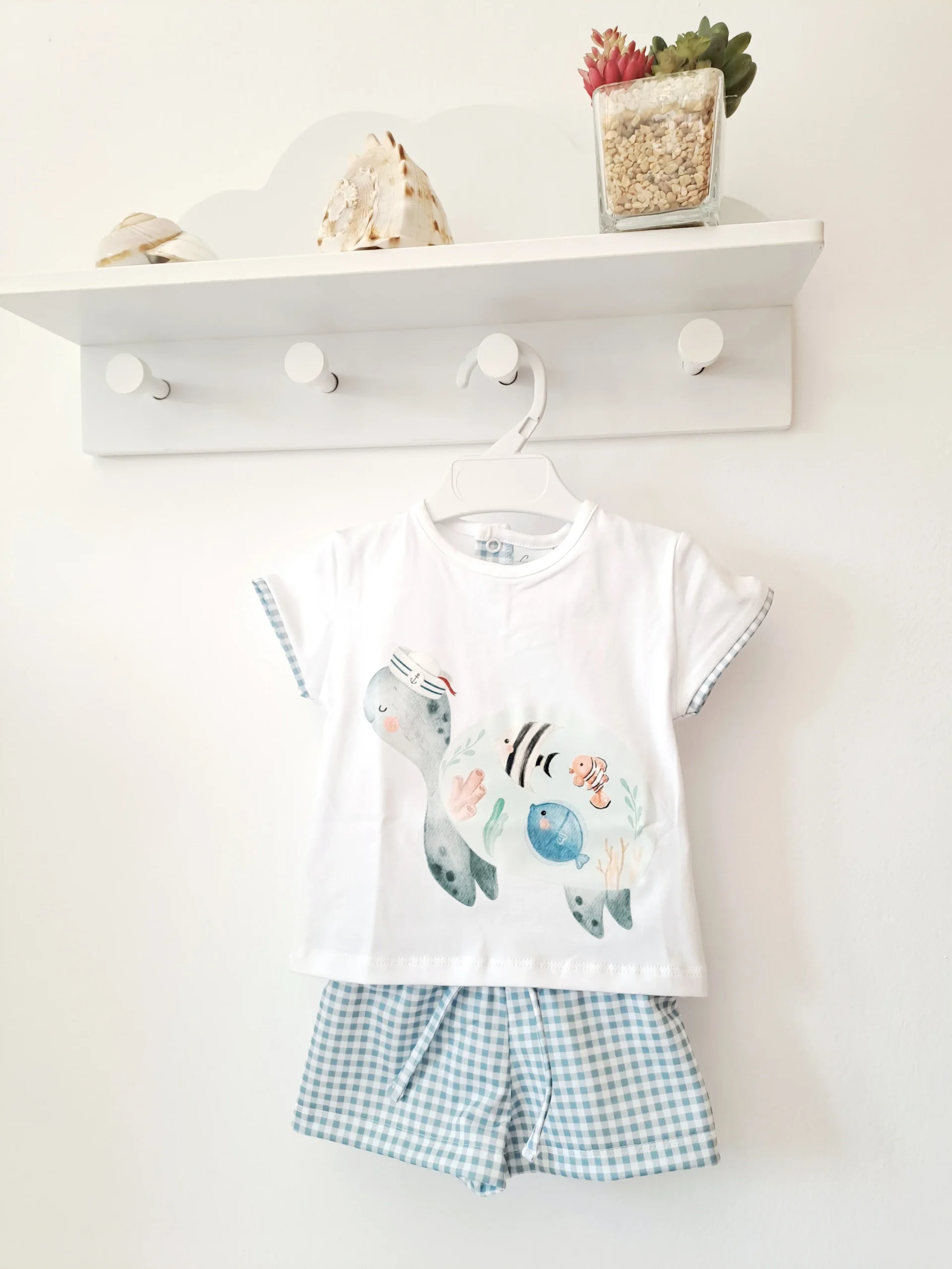 Conjunto camiseta algodón de patito y pantalón cuadros.💚