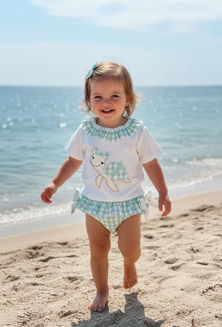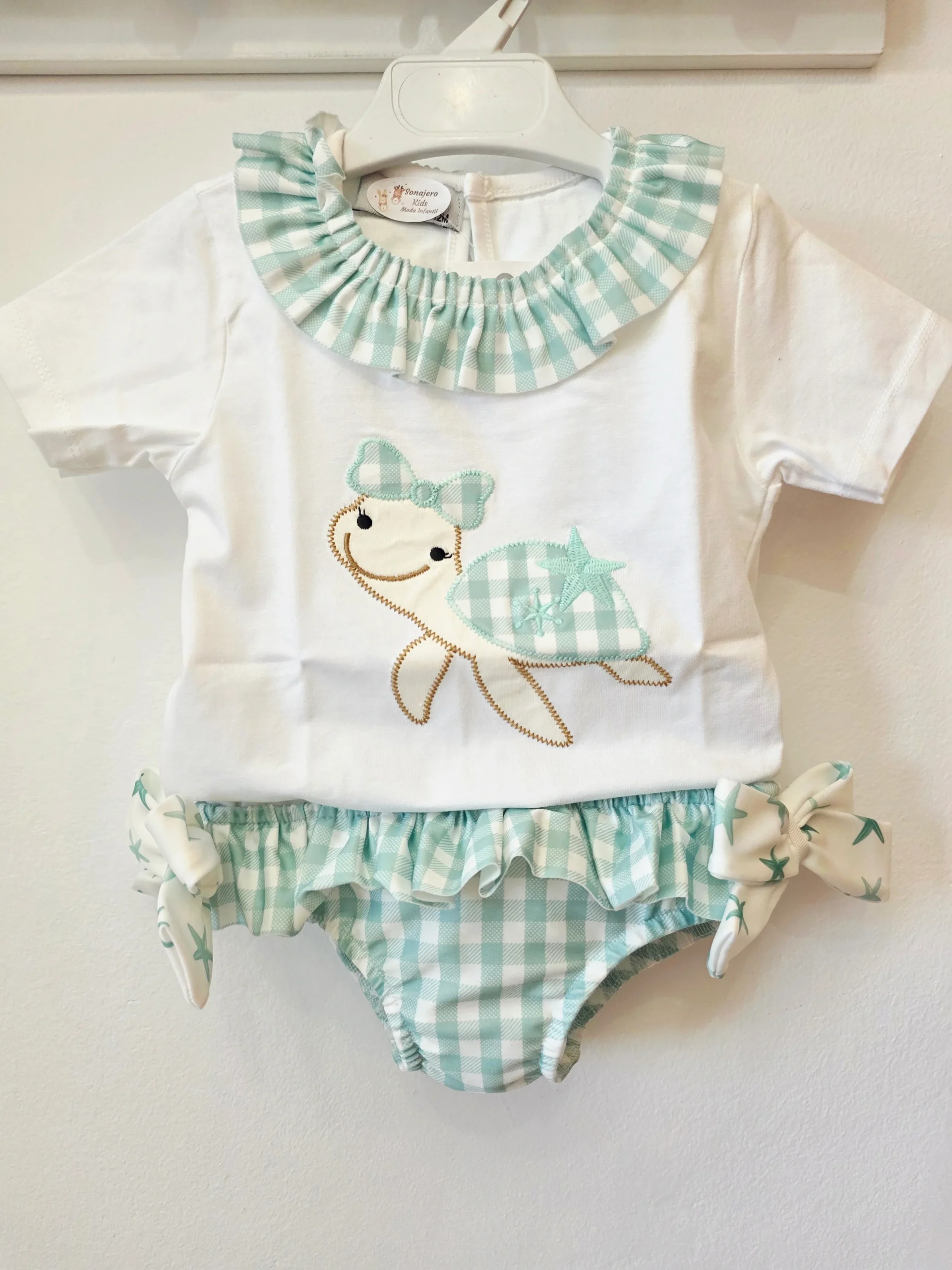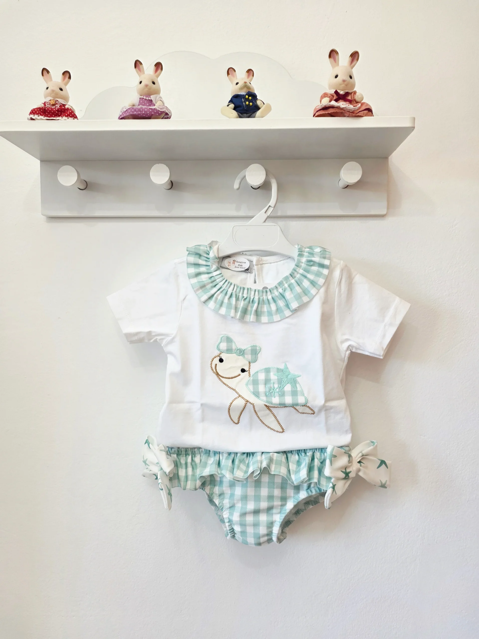 Conjunto de camiseta Blanca y Braguita con lazo.