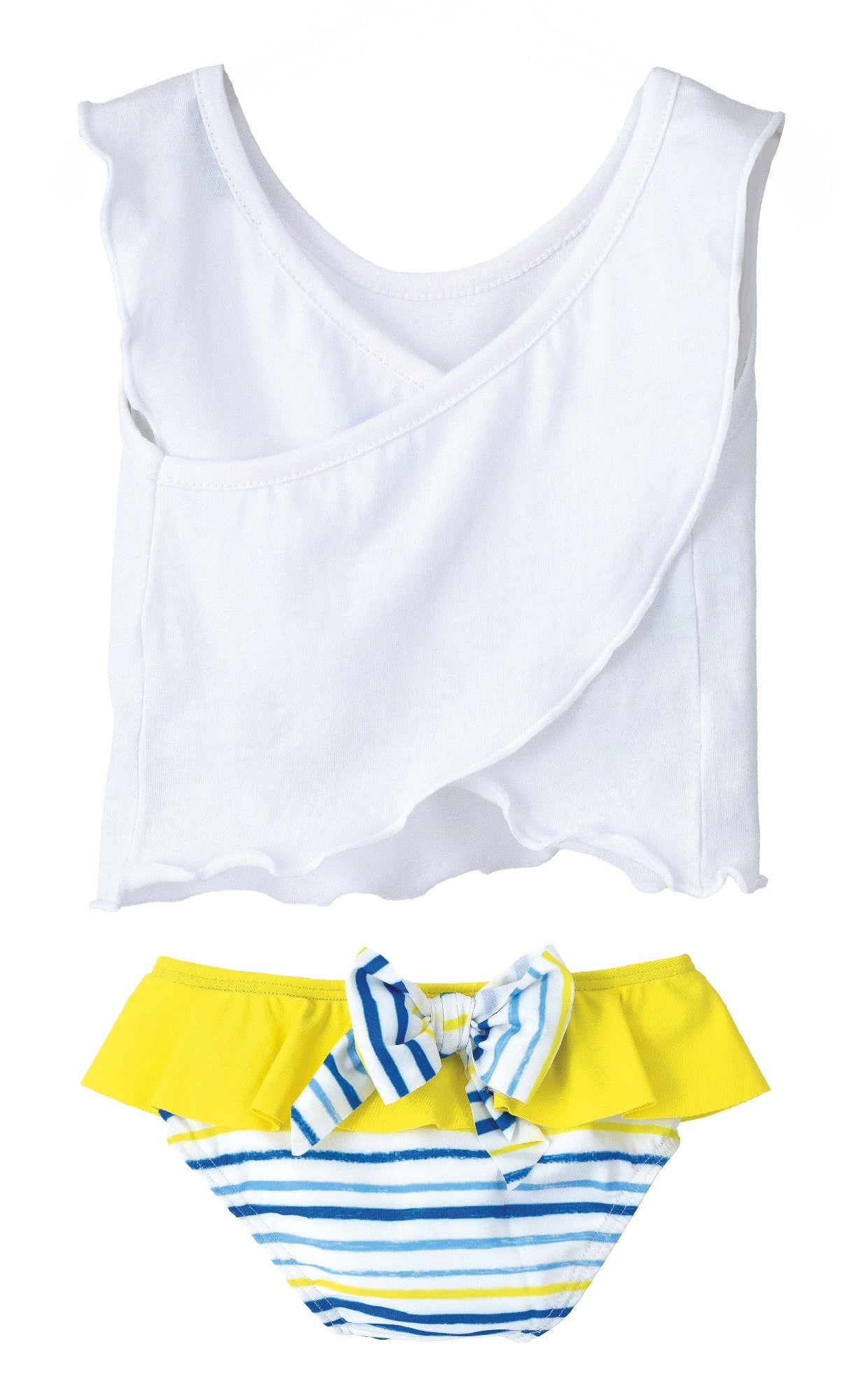 Conjunto peto algodón con camiseta y braguita con volante de rayas.💚
